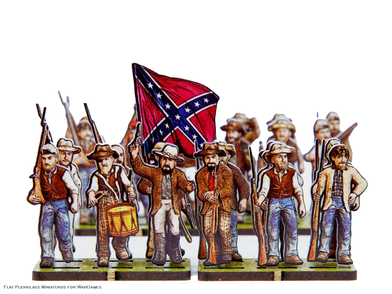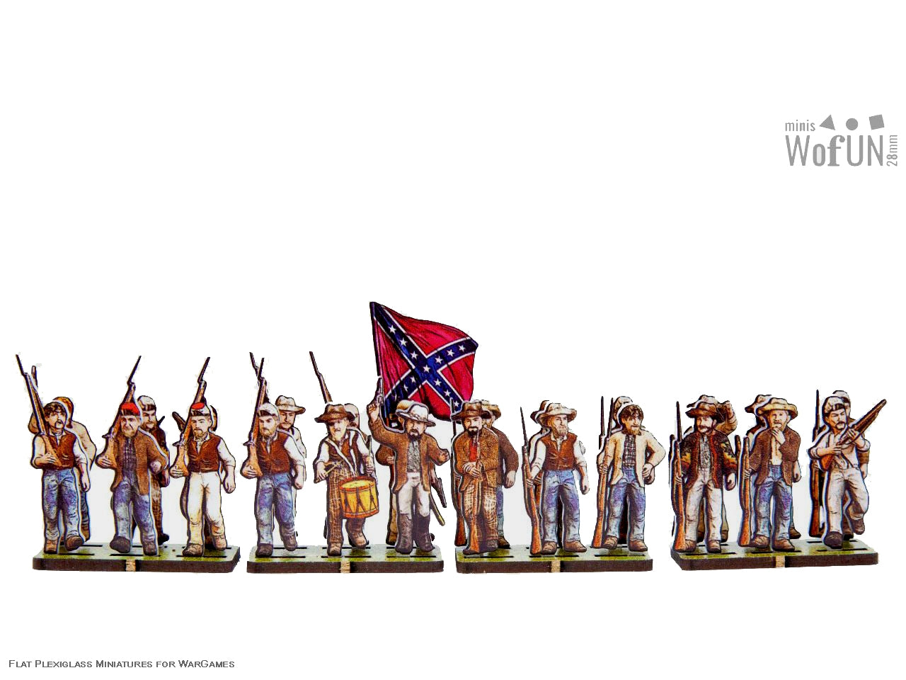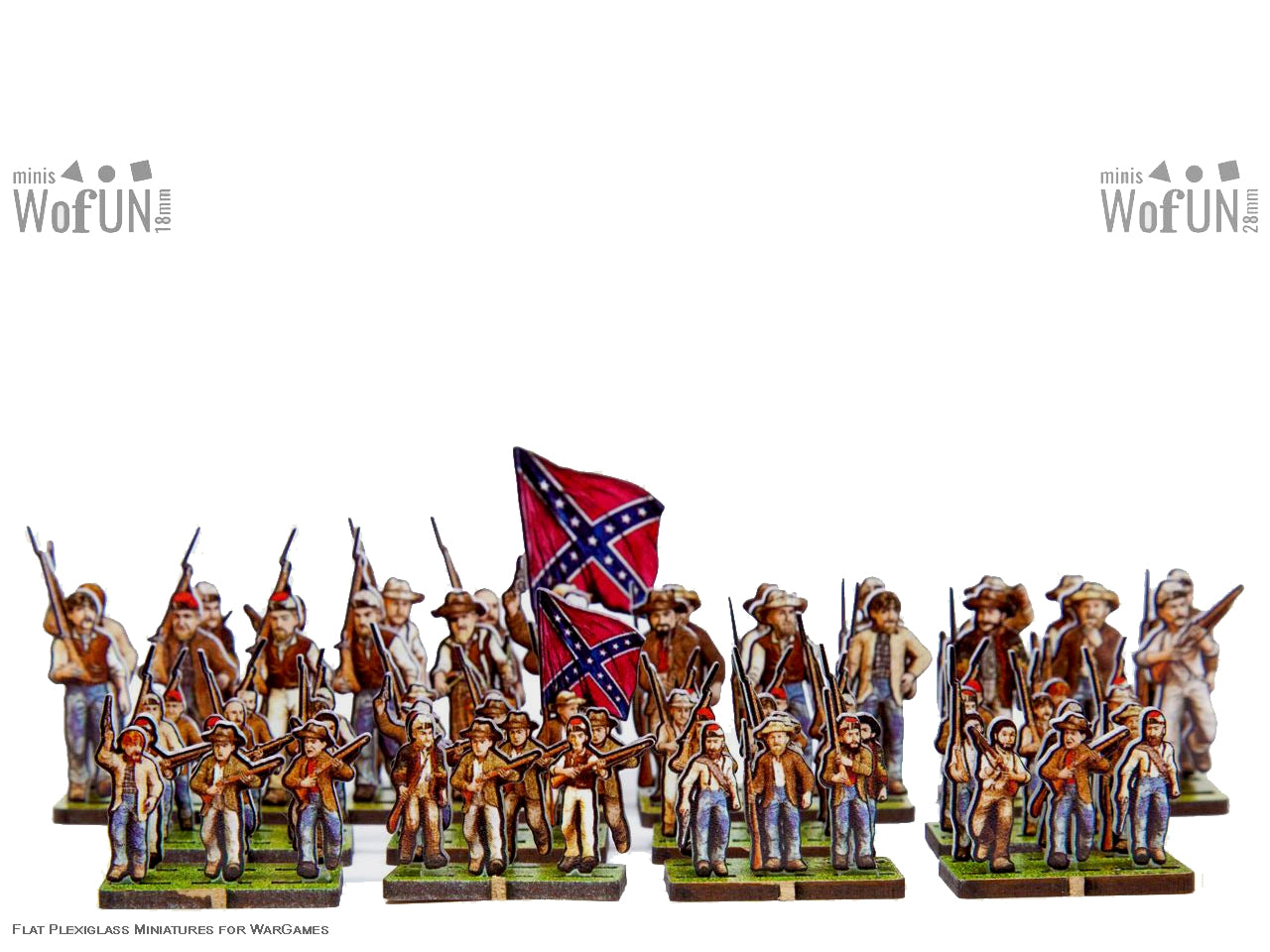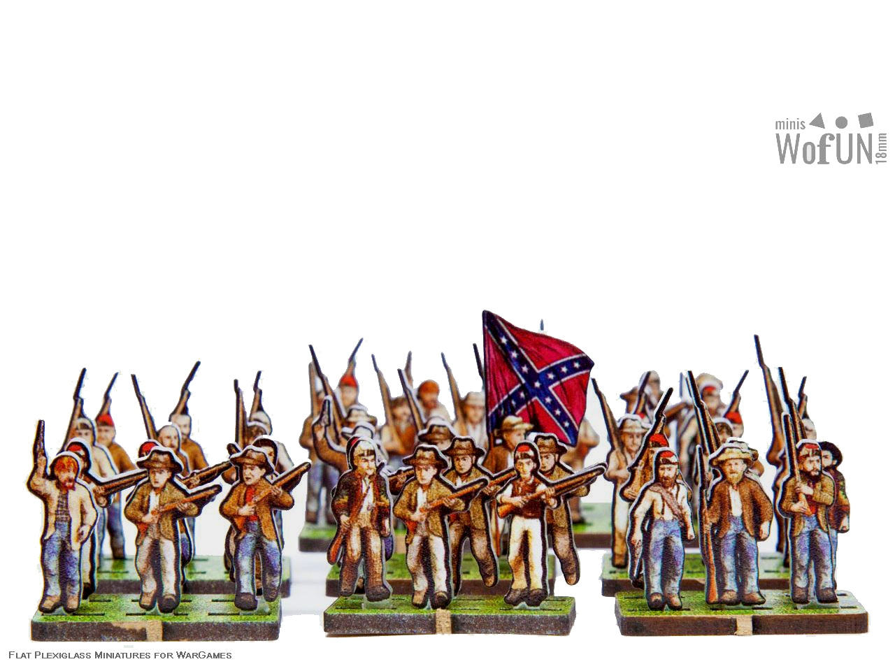 The Confederate Civil Troops 2 Set is crafted on a 15x20 cm Plexiglass sprue and includes: