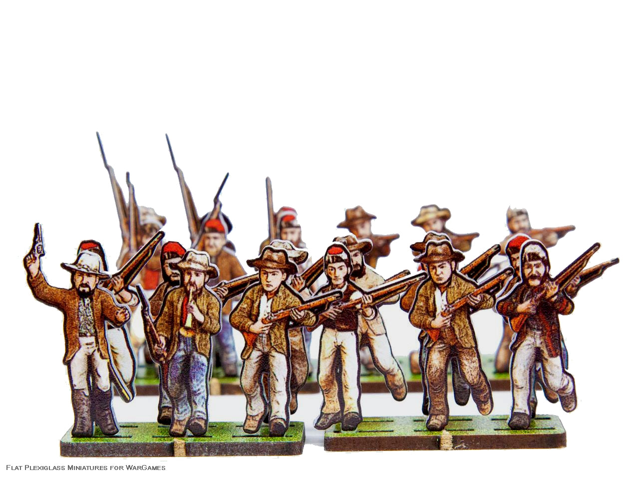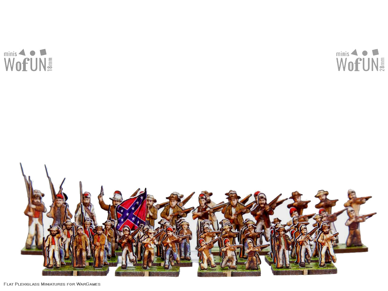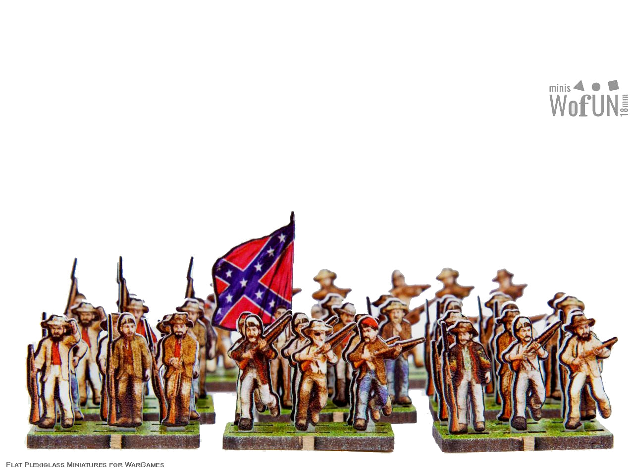 The Confederate Civil Troops 5 Set is crafted on a 15x20 cm Plexiglass sprue and includes: