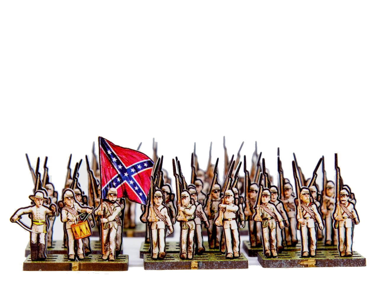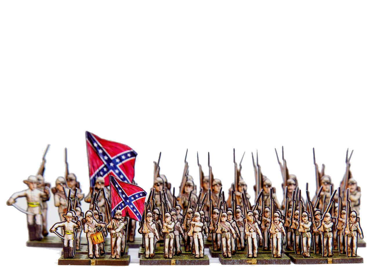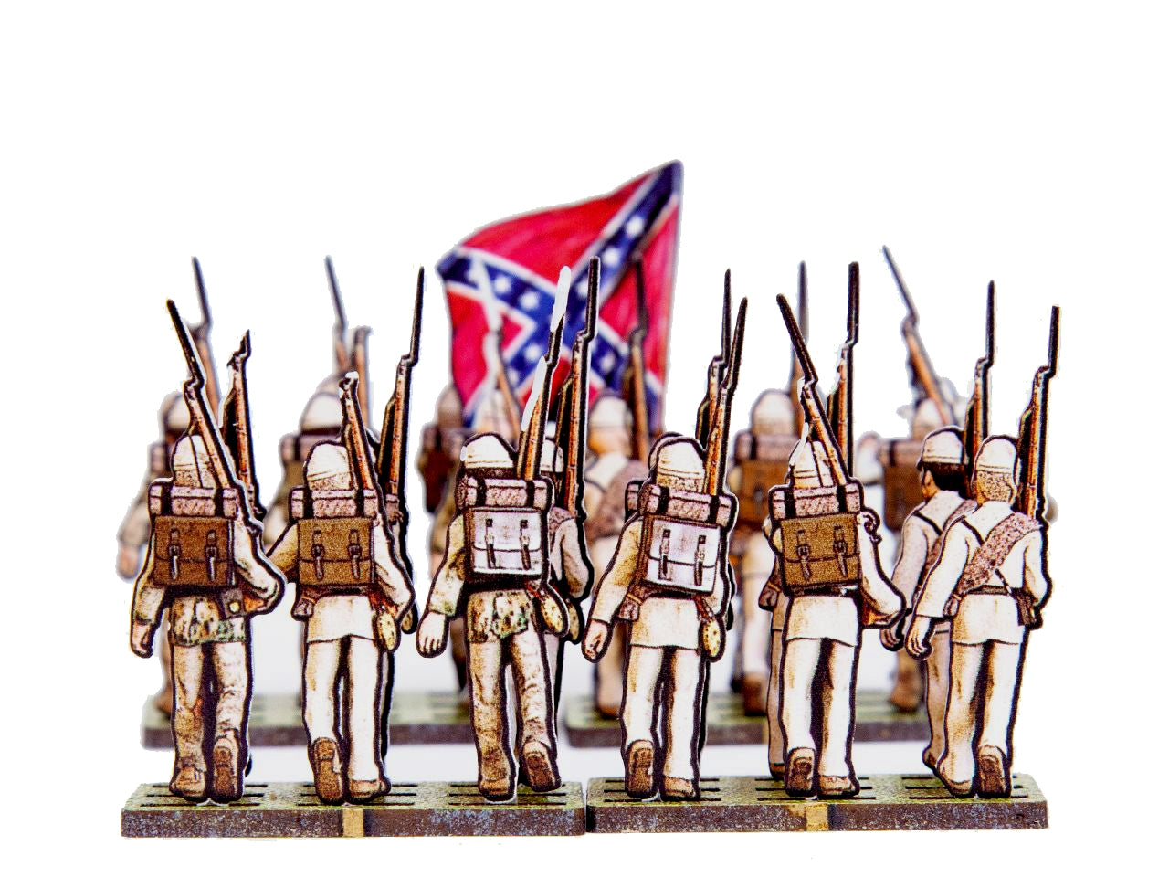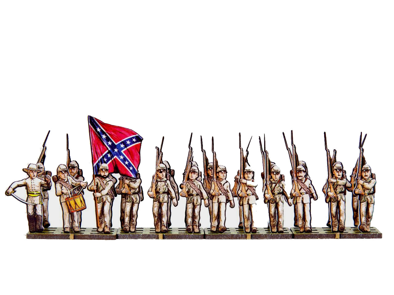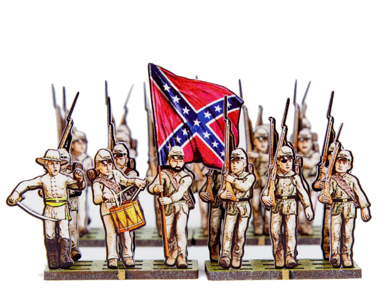 The Confederate Troops Marching Set is crafted on a 15x20 cm Plexiglass sprue and includes: