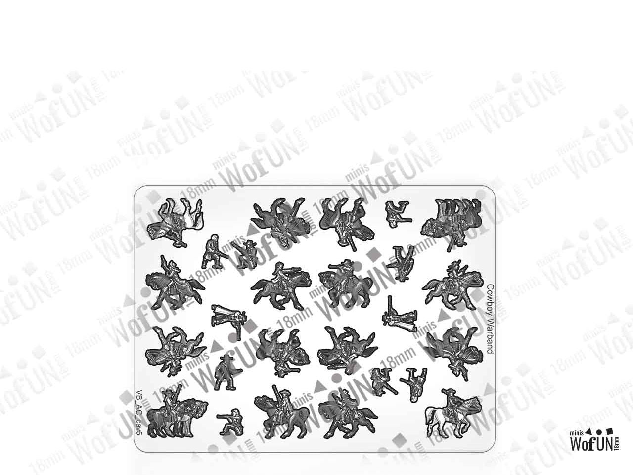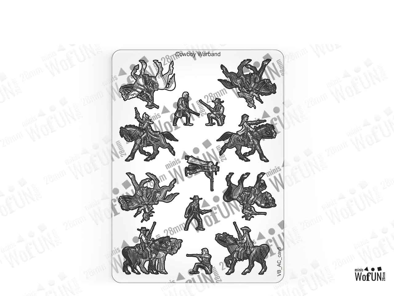 The Cowboy Warband Set is crafted on a 15x20 cm Plexiglass sprue and includes: