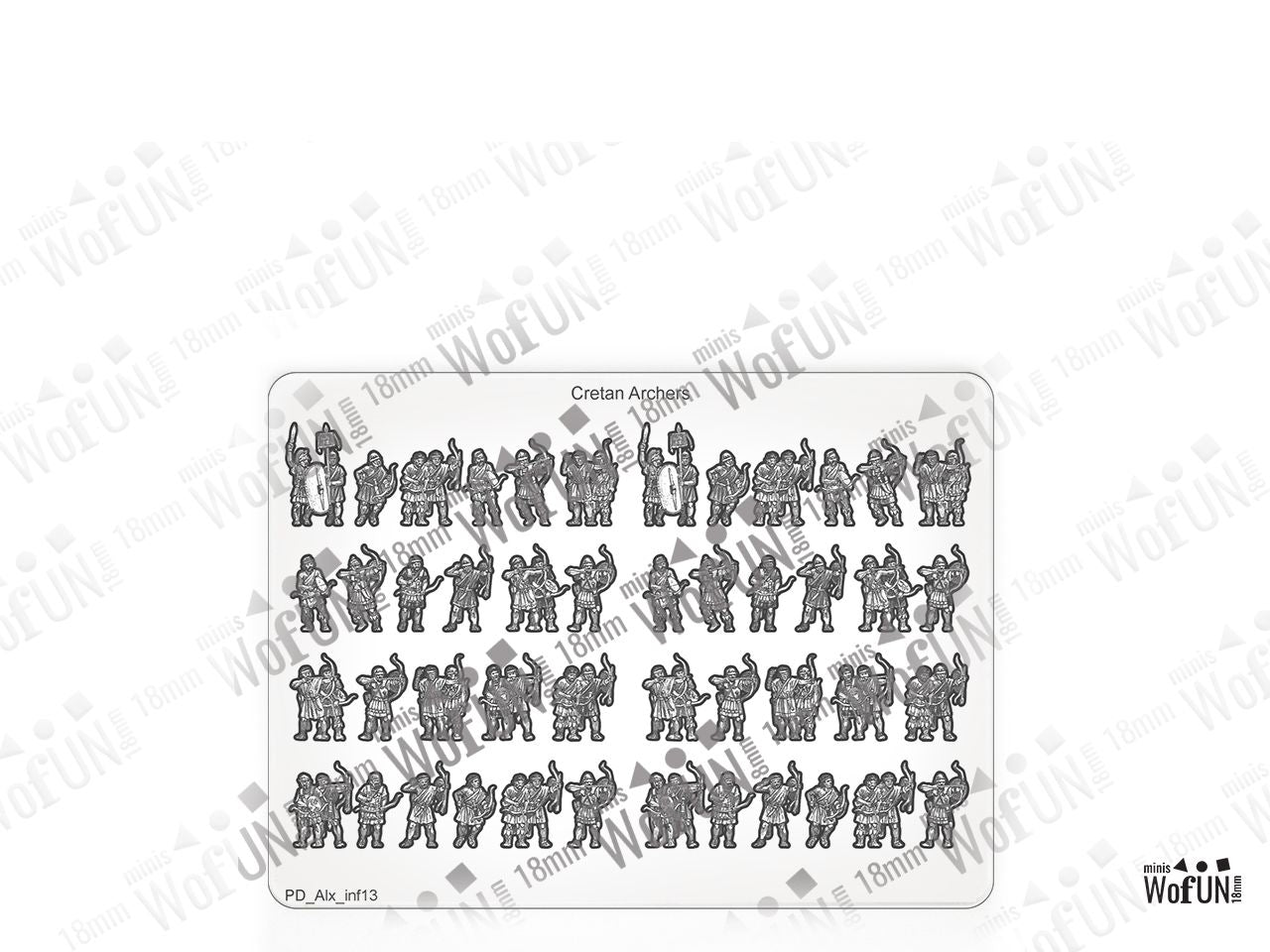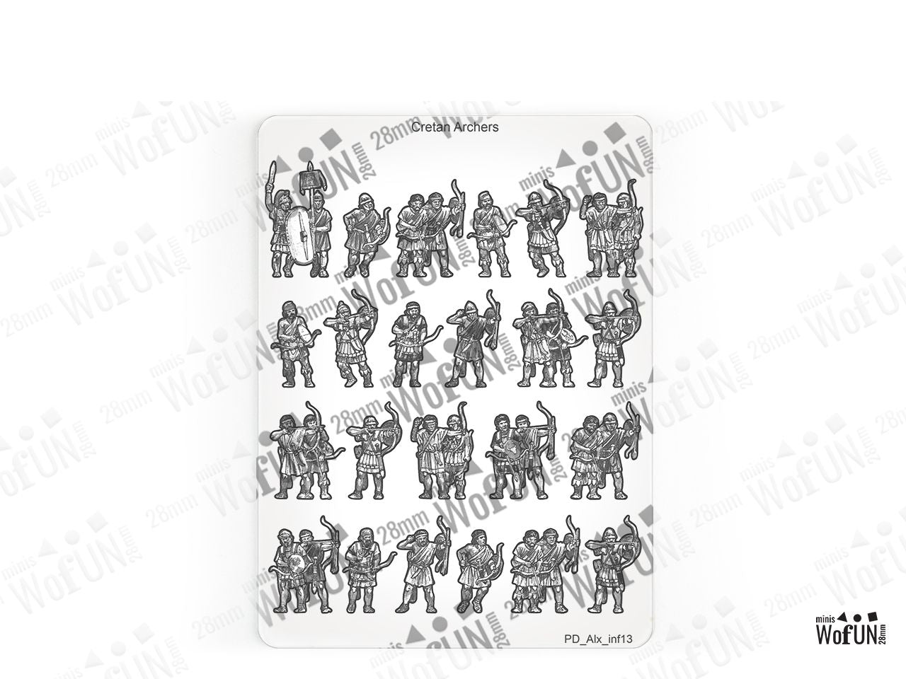The Cretan Archers Set is crafted on a 15x20 cm Plexiglass sprue and includes:
