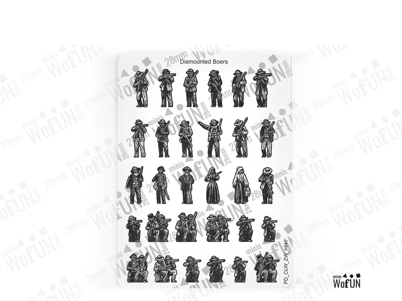 The Dismounted Boers Set is crafted on a 15x20 cm Plexiglass sprue and includes: