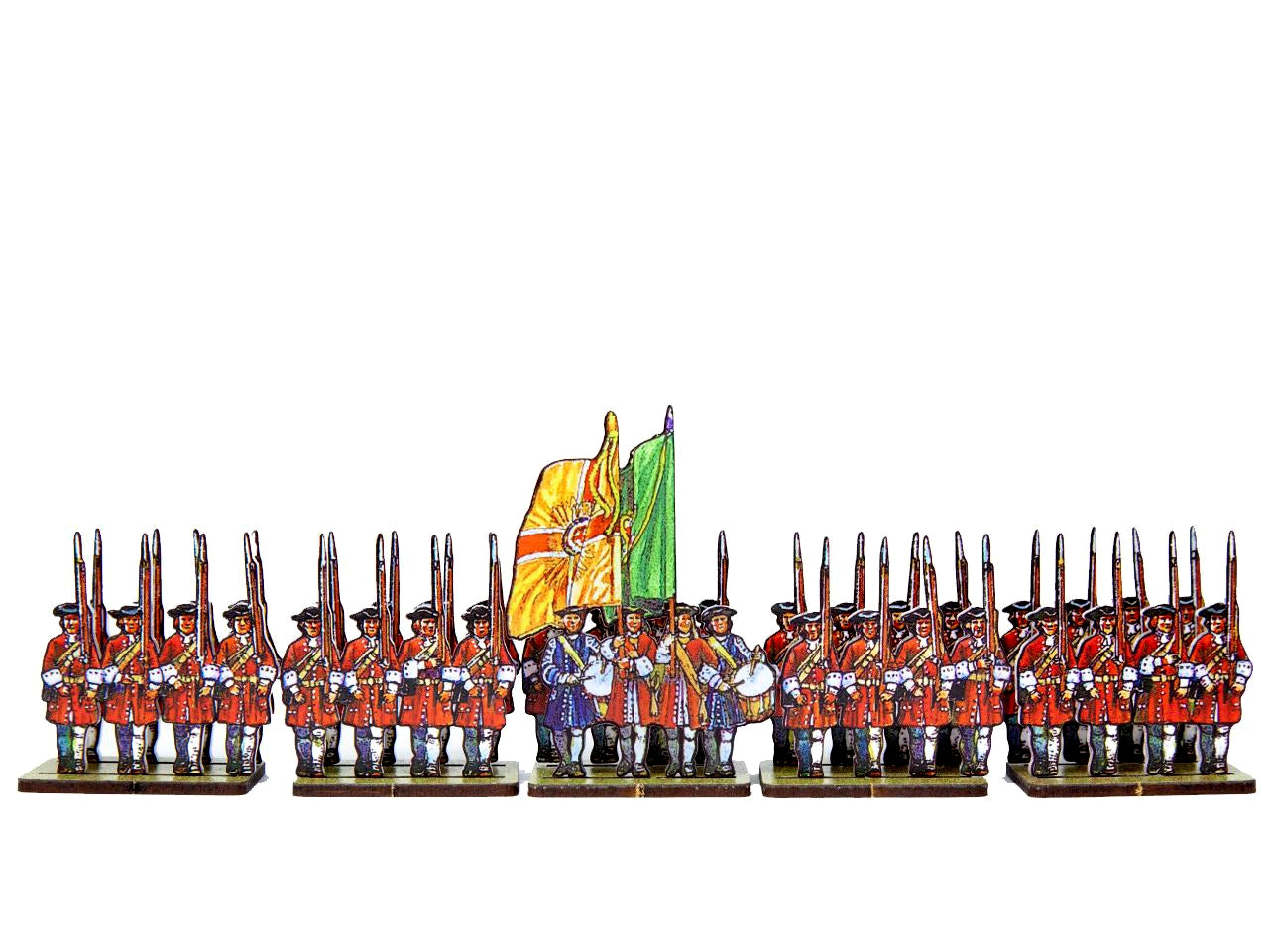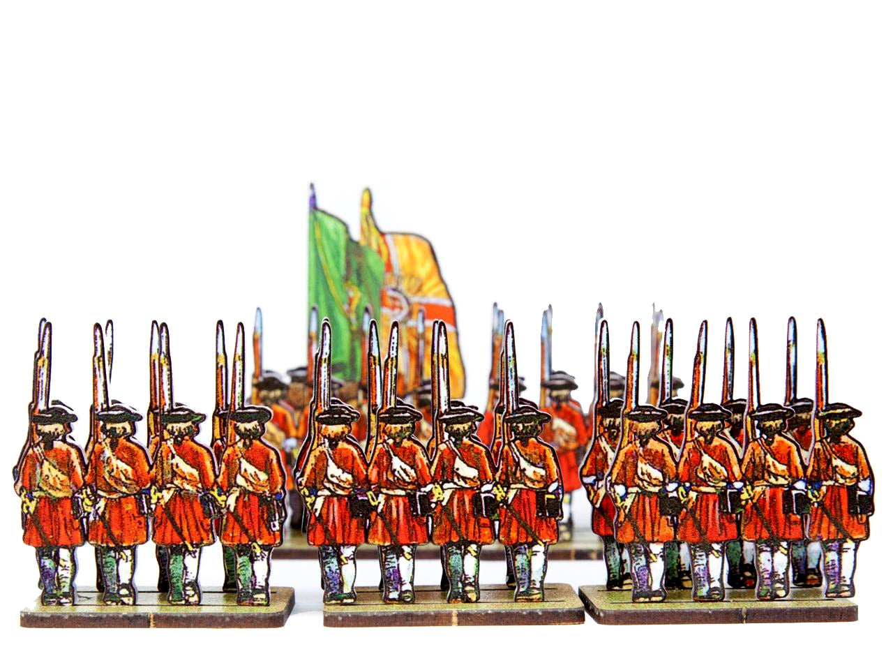 The Dutch Infantry (red uniforms) Set is crafted on a 15x20 cm Plexiglass sprue and includes: