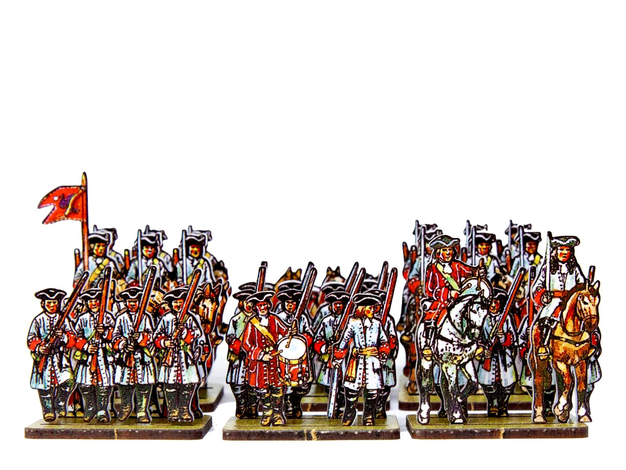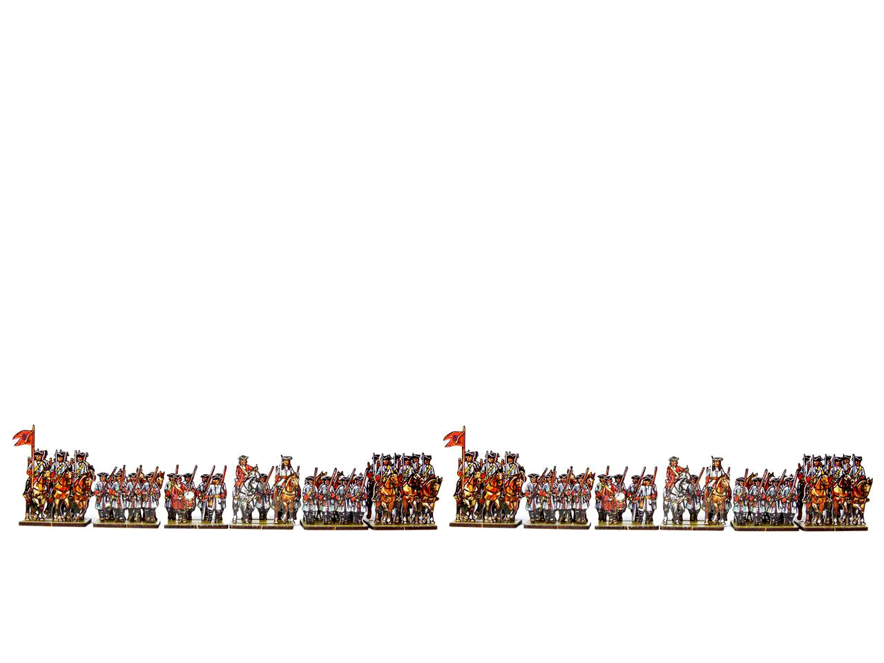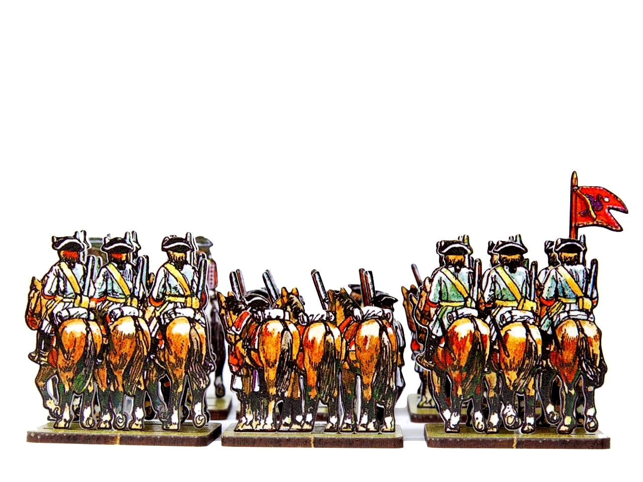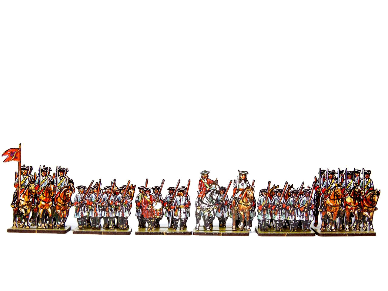 The Dutch/Prussian Dragoons Set is crafted on a 15x20 cm Plexiglass sprue and includes: