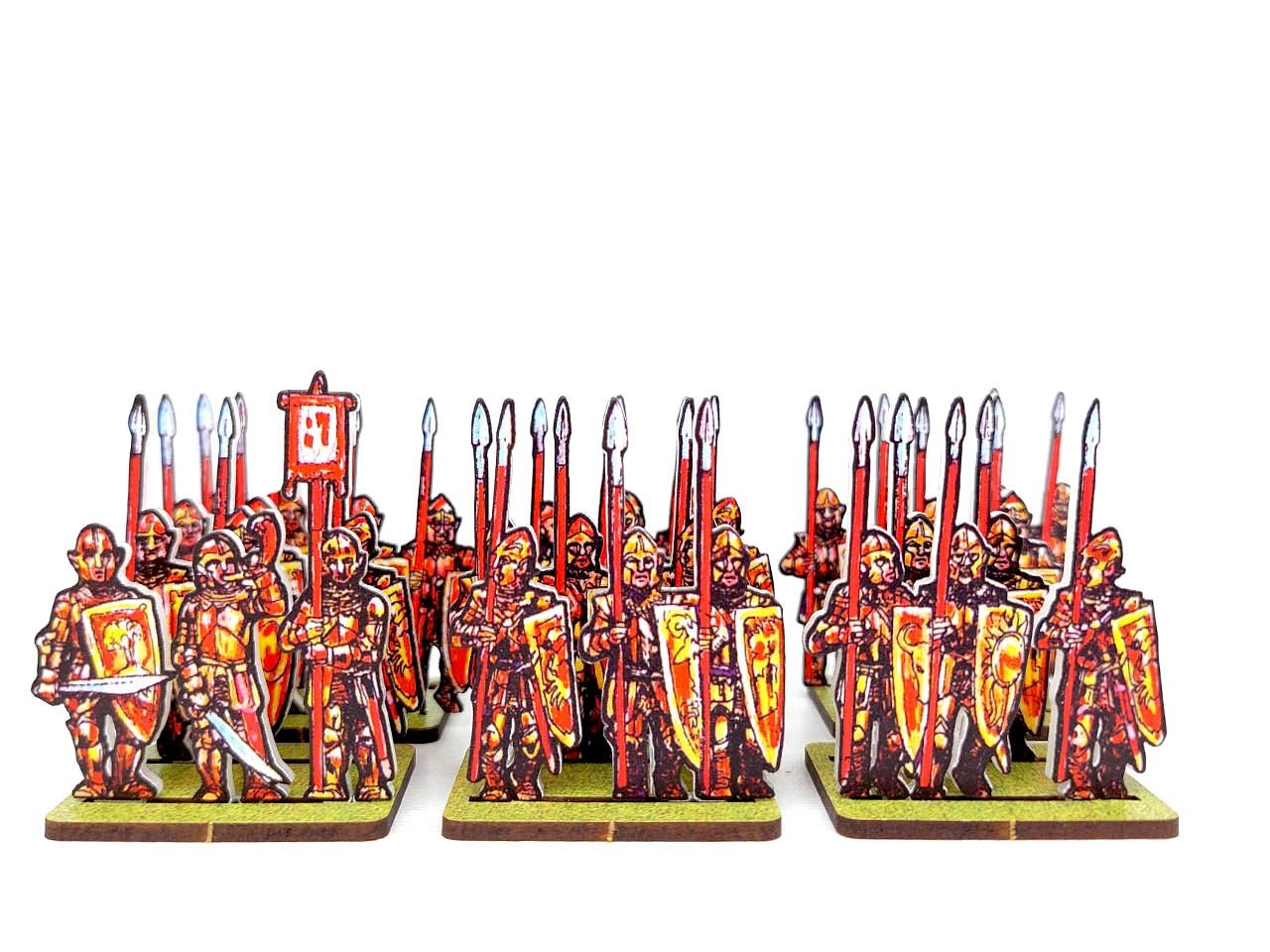 - An Infantry Base holds 2 strips of figurines, in 2 ranks (one behind the other).