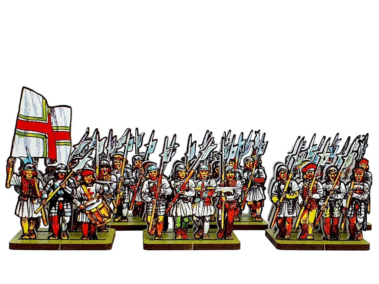 The English Billmen White Coats Set is crafted on a 15x20 cm Plexiglass sprue and includes: