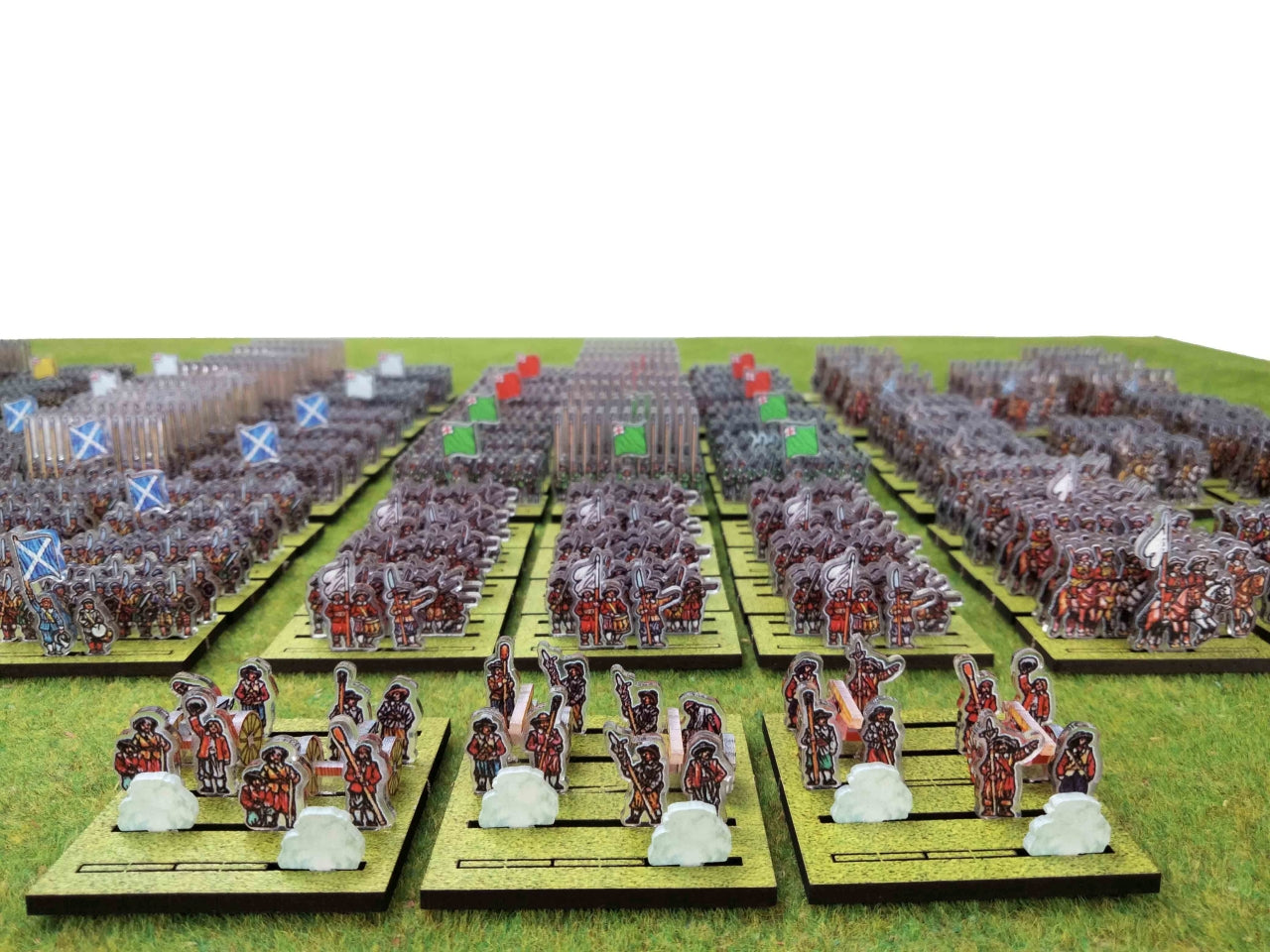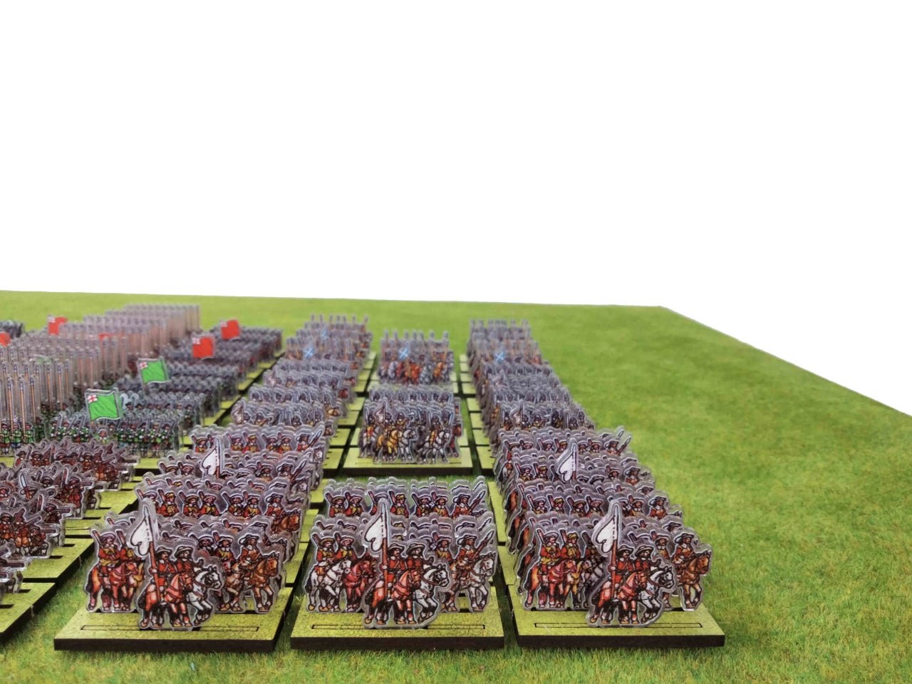 To enjoy fast wargaming, make sure to include the WoFun Standard Bases option. If you choose “No Bases”, we will include in your pack only the Plexiglass sprues of figurines, so that you can make your own basing. The WoFun bases for the 10 mm scale are made from MDF (2.5 mm thickness) and come printed in green (grass texture). The bases have pre-cut slots in which the figurines are easily inserted.