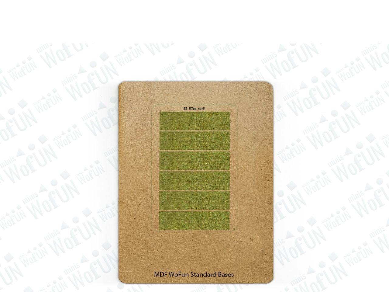 WoFun's Standard Bases for Soldier Shop collections are made from MDF (2.5mm thickness) printed in green (grass texture) on one side and a pre-cut slot to hold the figurines. English Light Dragoons, Hanoverian Horse Grenadiers, Hanoverian Horse Foot Addon has 6 bases shown in the images of the product. We created five models of bases for SoldierShop collections as follows: 120mm x 20mm, 80mm x 20mm, 60mm x 20mm, 35mm x 20mm, 20mm x 20mm.