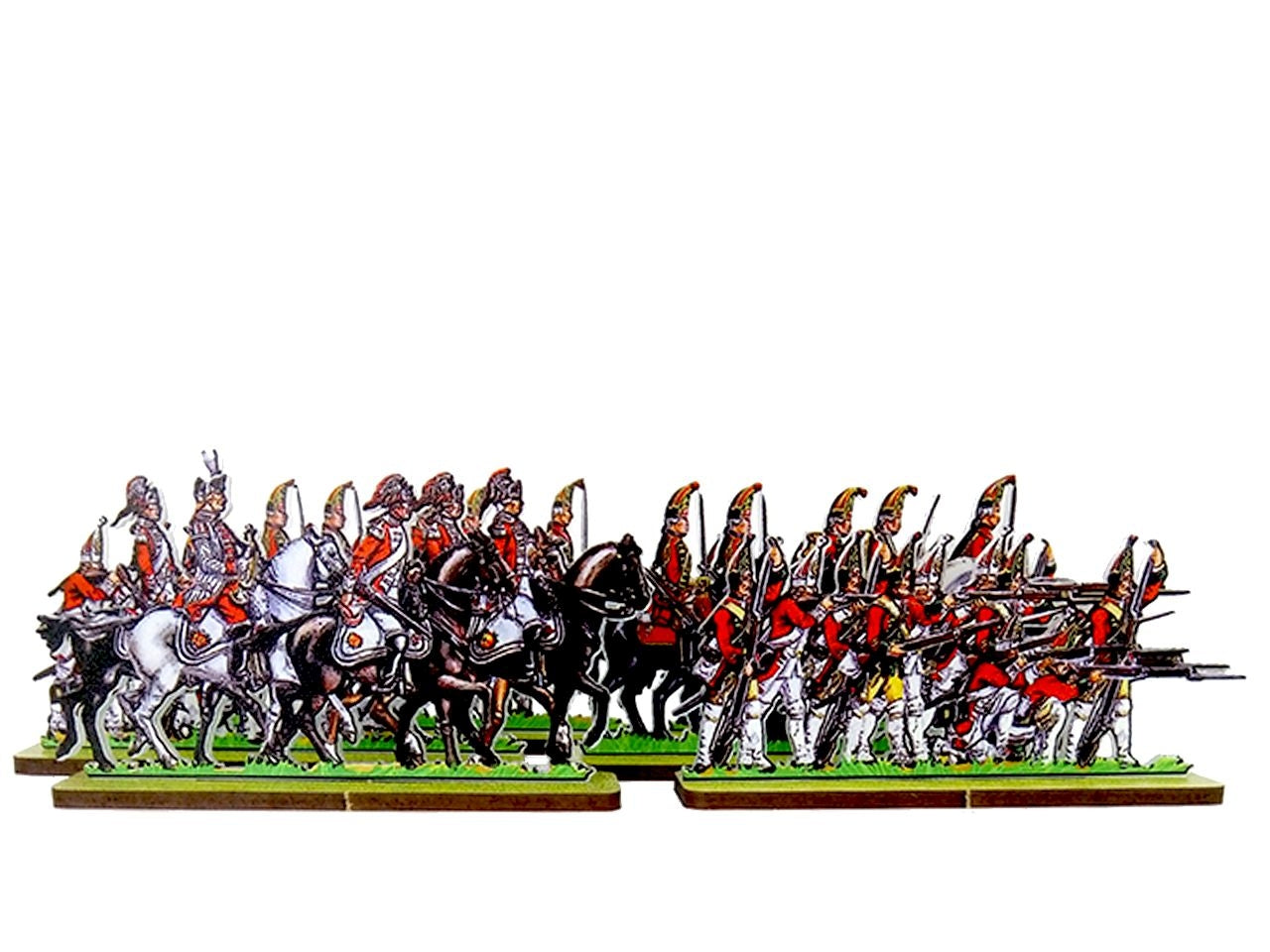 The content of the English Light Dragoons, Hanoverian Horse Grenadiers, Hanoverian Horse Foot Addon is presented in the product's images.