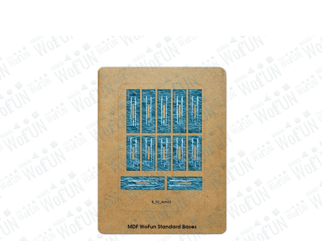 What is the WoFun Standard Bases option?By selecting the WoFun Standard Bases option, you'll receive all the bases required for each set of miniatures. The base types vary by collection and miniatures type. PD, KC, JP, SC and WoF collections include bases with two ranks suited for groups of figurines, while VB and GS Signature Editions (for skirmish wargaming) feature bases for individual figurines, ranging from 15mm to 4cm.
