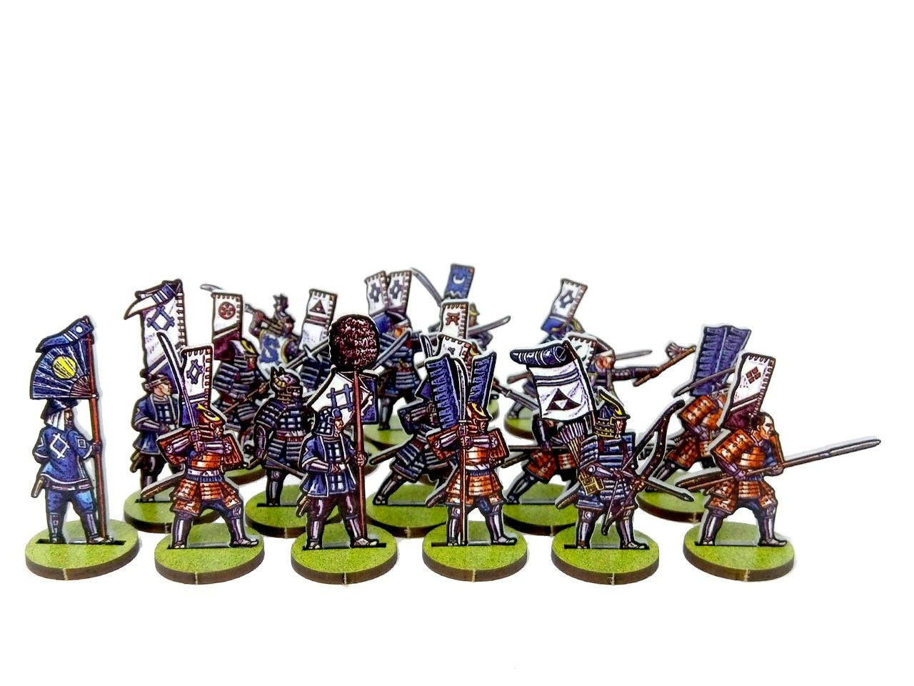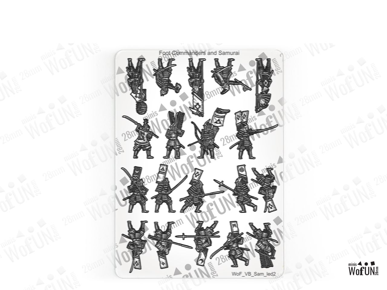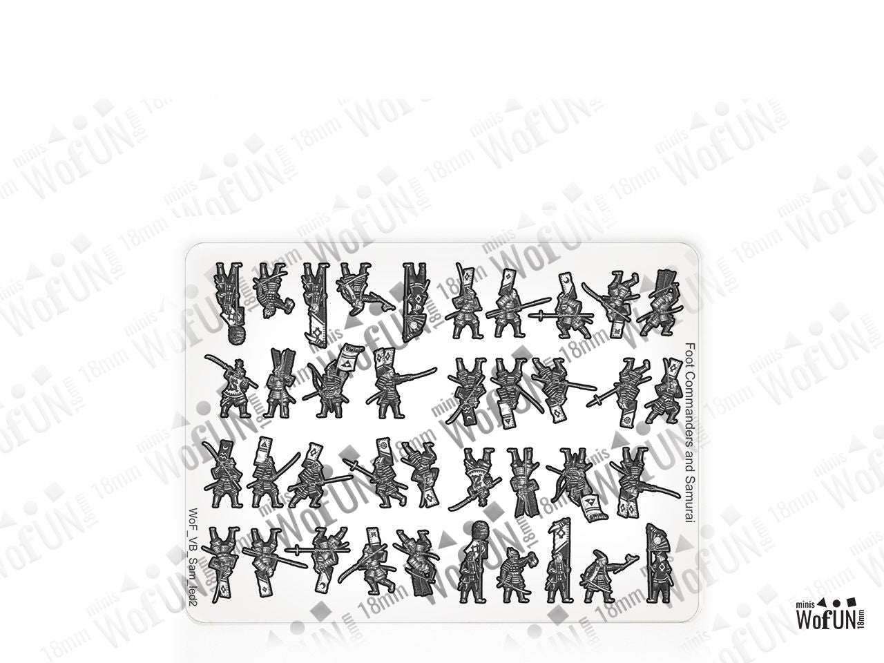 The Foot Commanders and Samurai Set is crafted on a 15x20 cm Plexiglass sprue and includes: