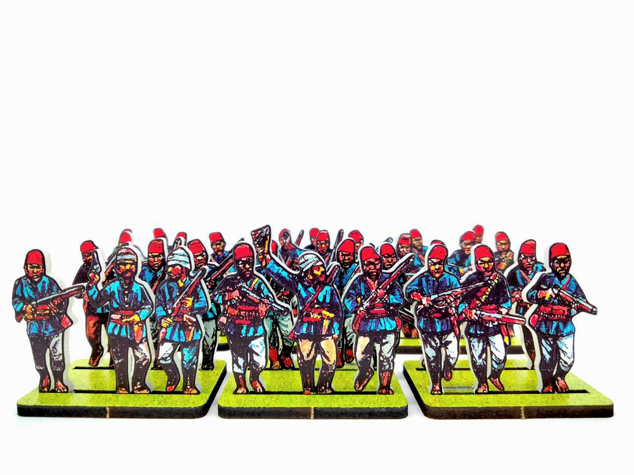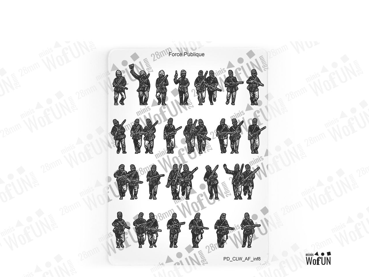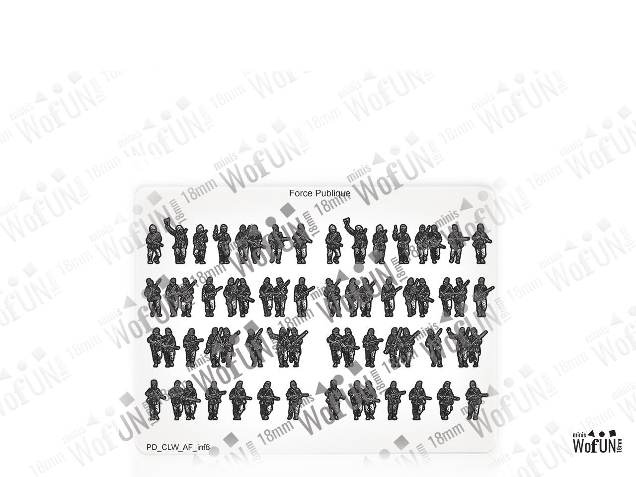 The Force Publique Set is crafted on a 15x20 cm Plexiglass sprue and includes: