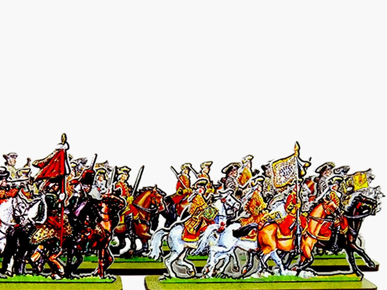 WoFun's Standard Bases for Soldier Shop collections are made from MDF (2.5mm thickness) printed in green (grass texture) on one side and a pre-cut slot to hold the figurines. French Cavalry, Hussars of Conflans, Mason du Roi Addon has 6 bases shown in the images of the product. We created five models of bases for SoldierShop collections as follows: 120mm x 20mm, 80mm x 20mm, 60mm x 20mm, 35mm x 20mm, 20mm x 20mm.