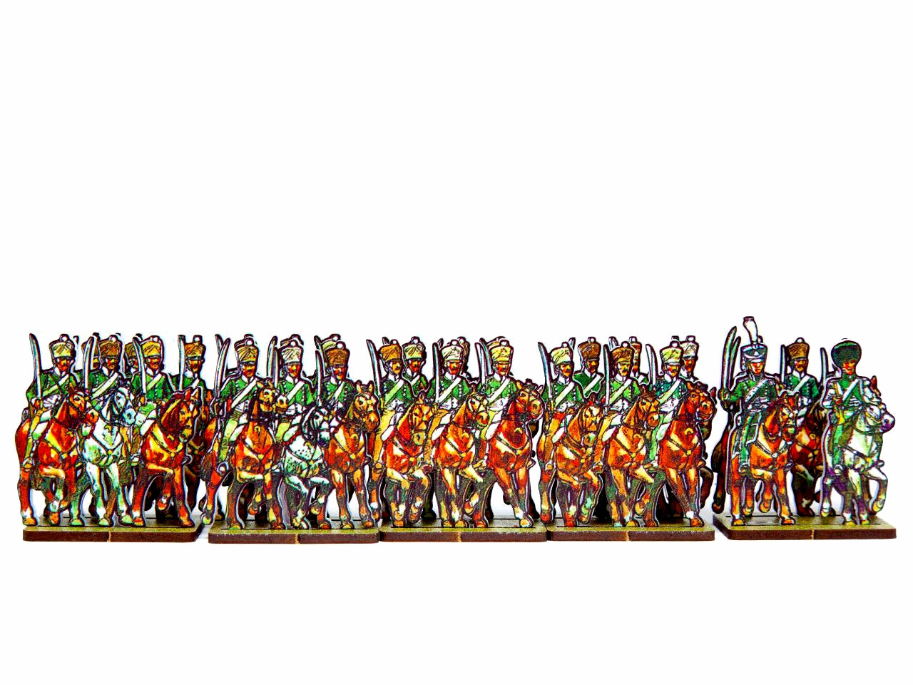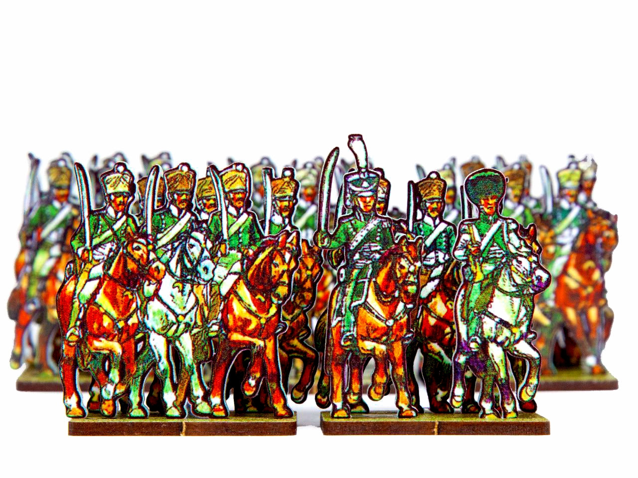 The French Chasseurs a Cheval Set is crafted on a 15x20 cm Plexiglass sprue and includes:
