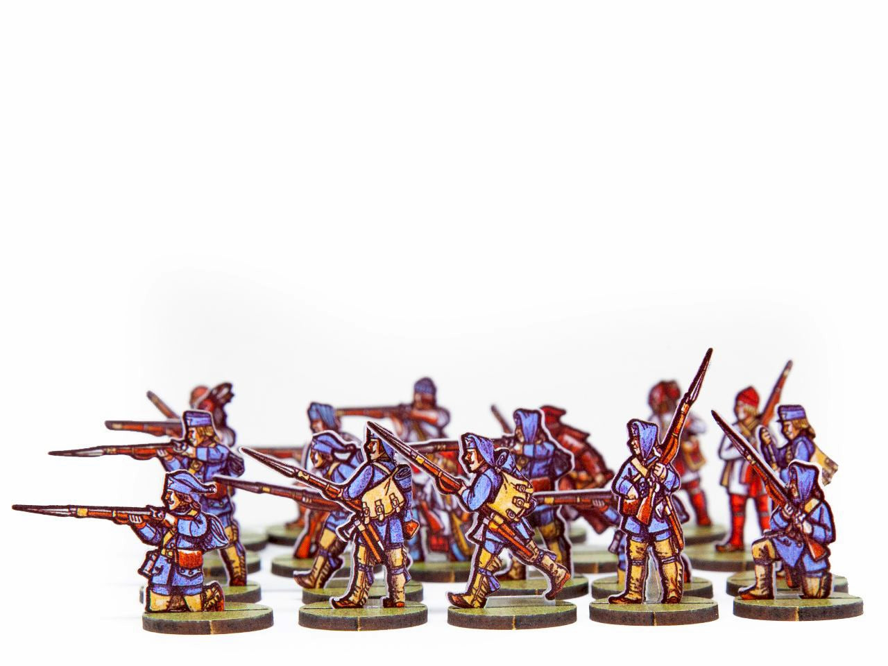 The French Light Infantry Set is crafted on a 15x20 cm Plexiglass sprue and includes: