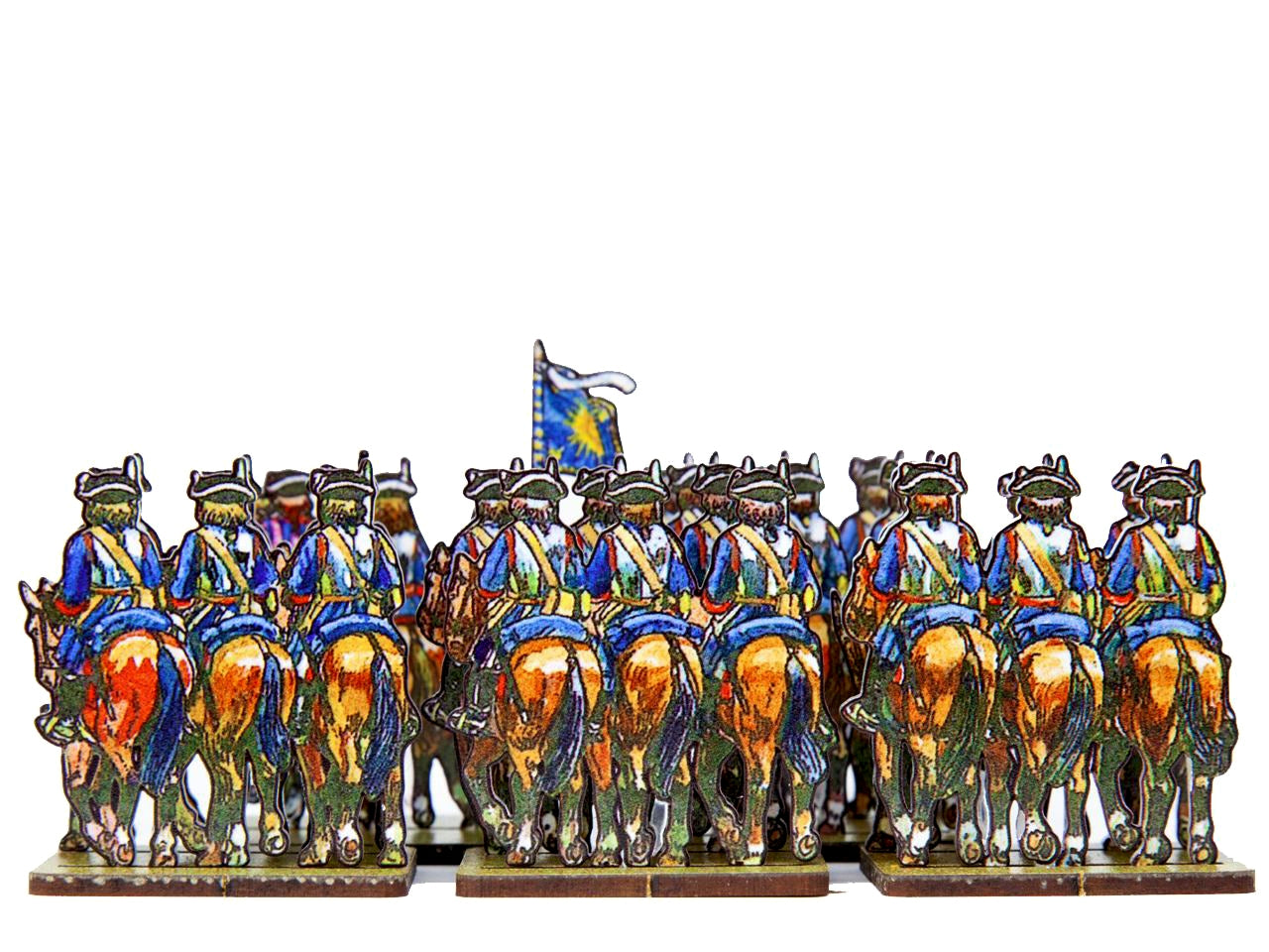 - A Cavalry Base holds 2 strips of figurines, in 2 ranks.