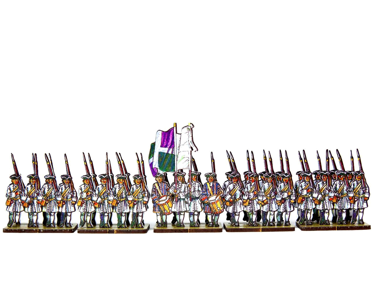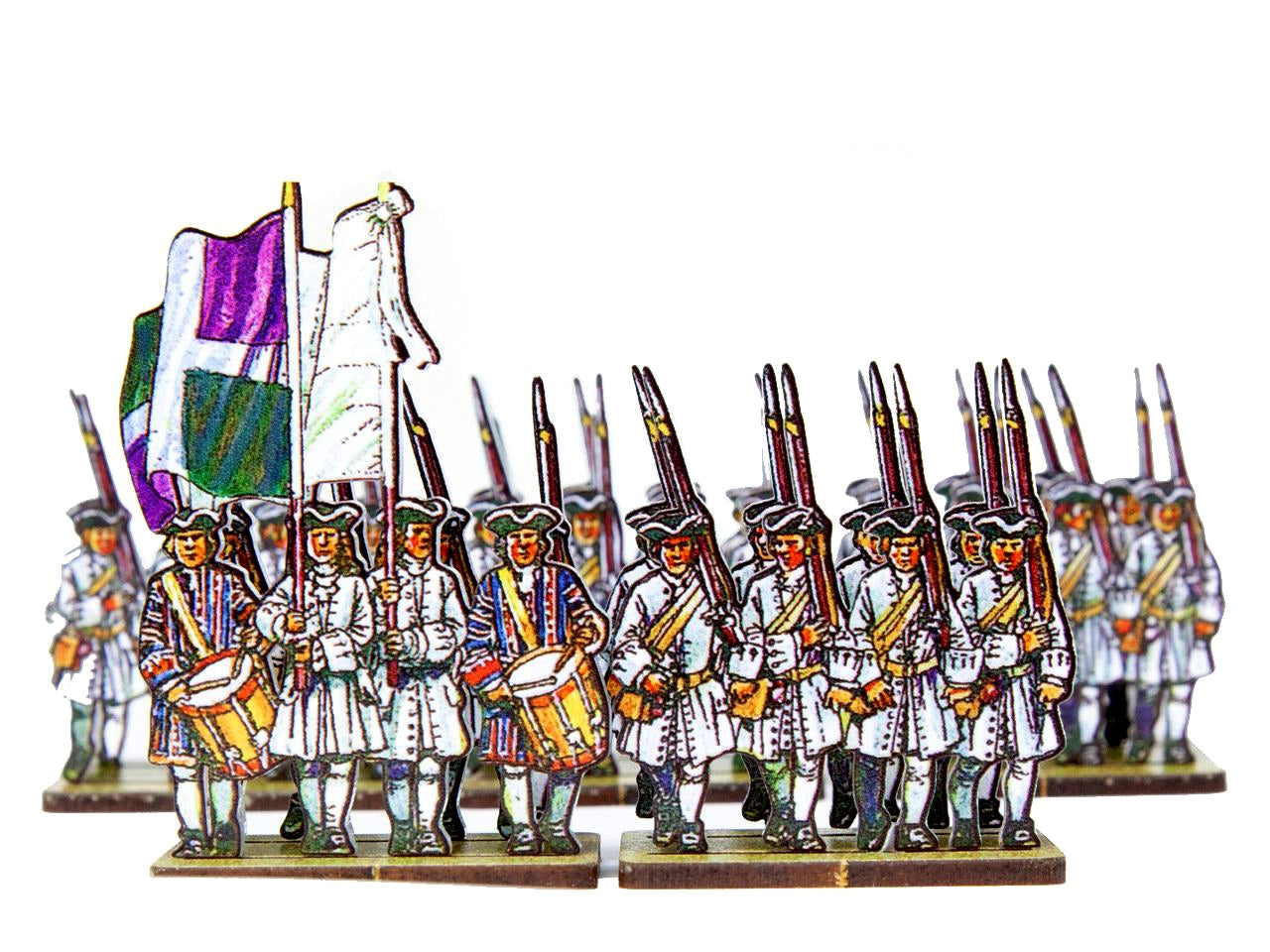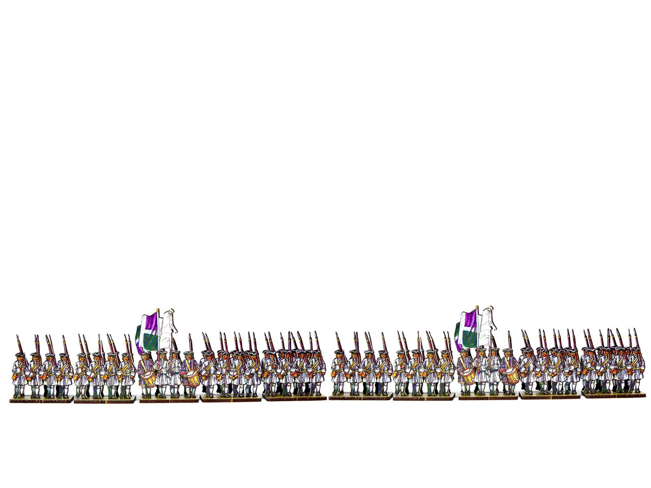 The French Line Infantry Auvergne (white facings & white cuffs) Set is crafted on a 15x20 cm Plexiglass sprue and includes: