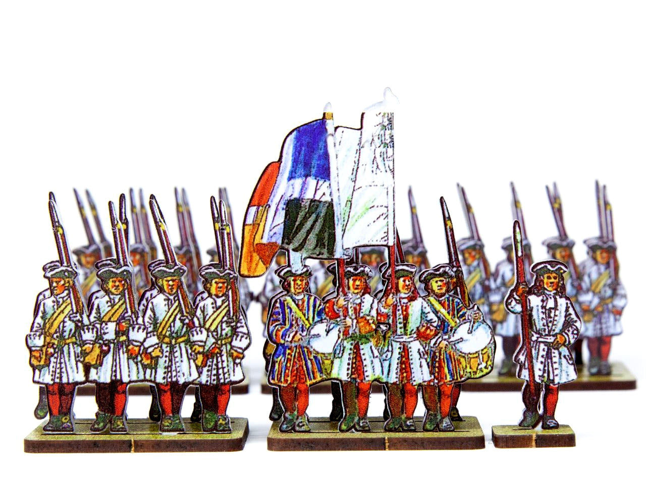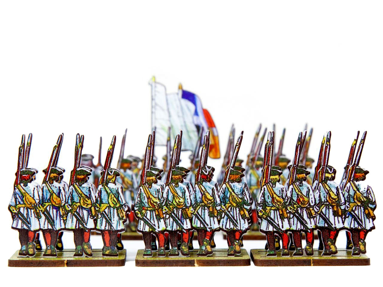 The French Line Infantry Bourbon (red stockings) Set is crafted on a 15x20 cm Plexiglass sprue and includes: