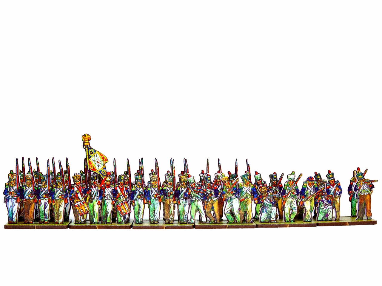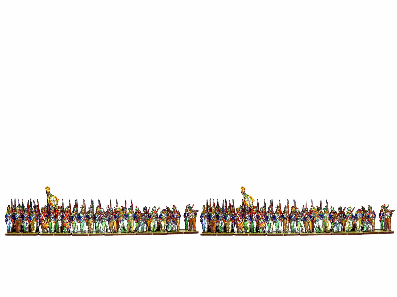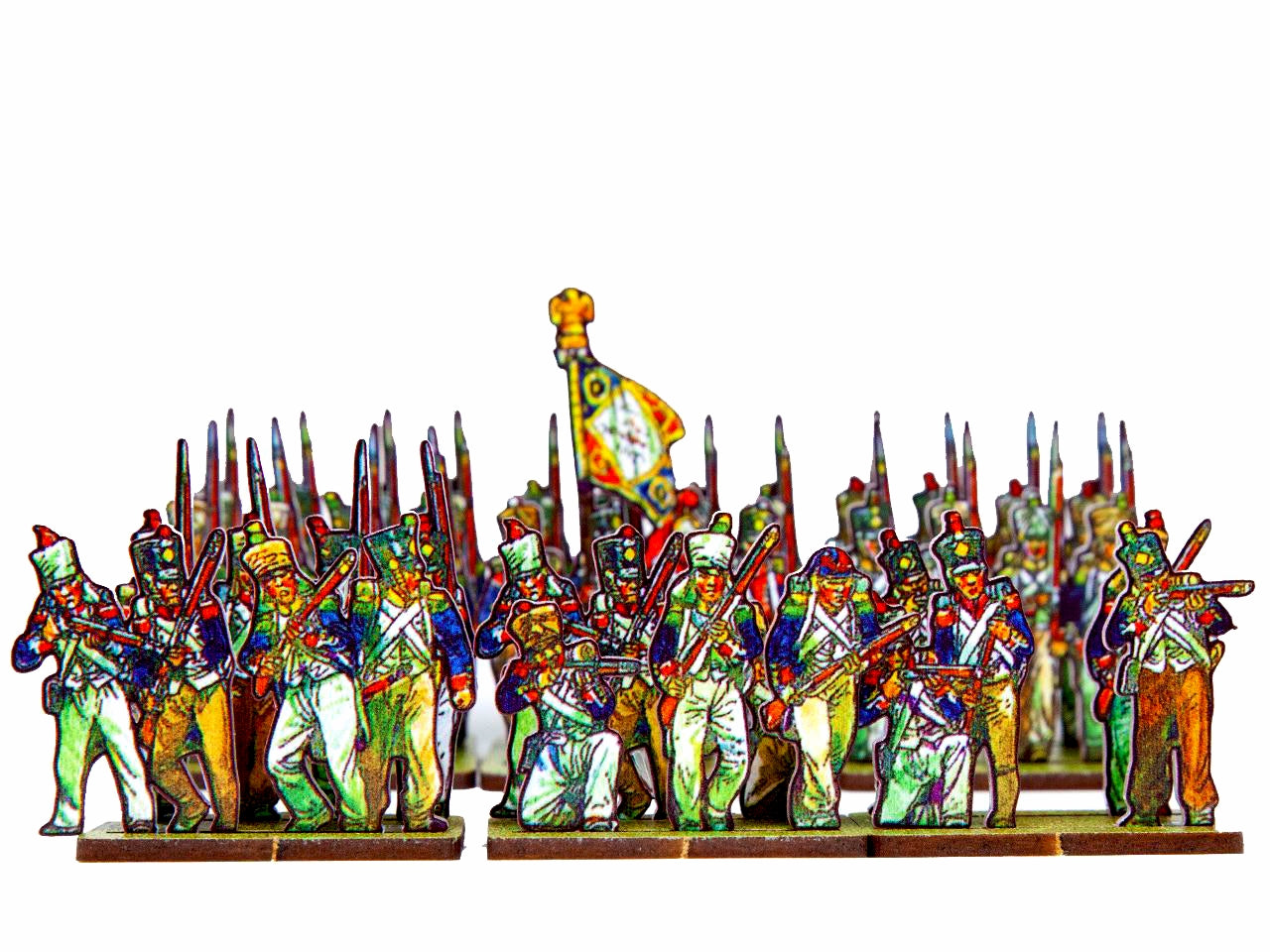 The French Line Infantry Voltigeurs and Grenadiers Set is crafted on a 15x20 cm Plexiglass sprue and includes: