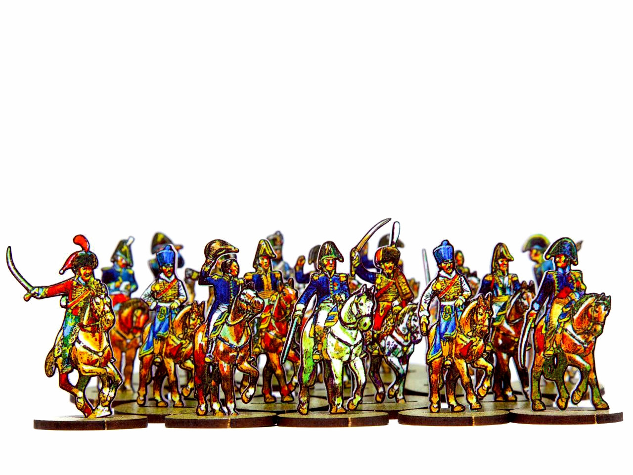 The French Mounted Officers Set is crafted on a 15x20 cm Plexiglass sprue and includes: