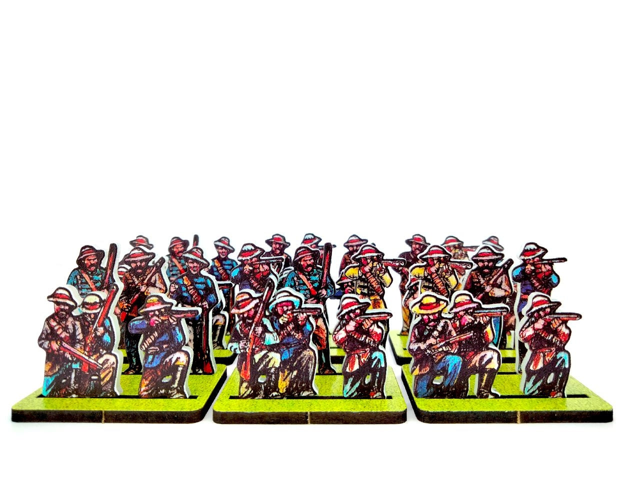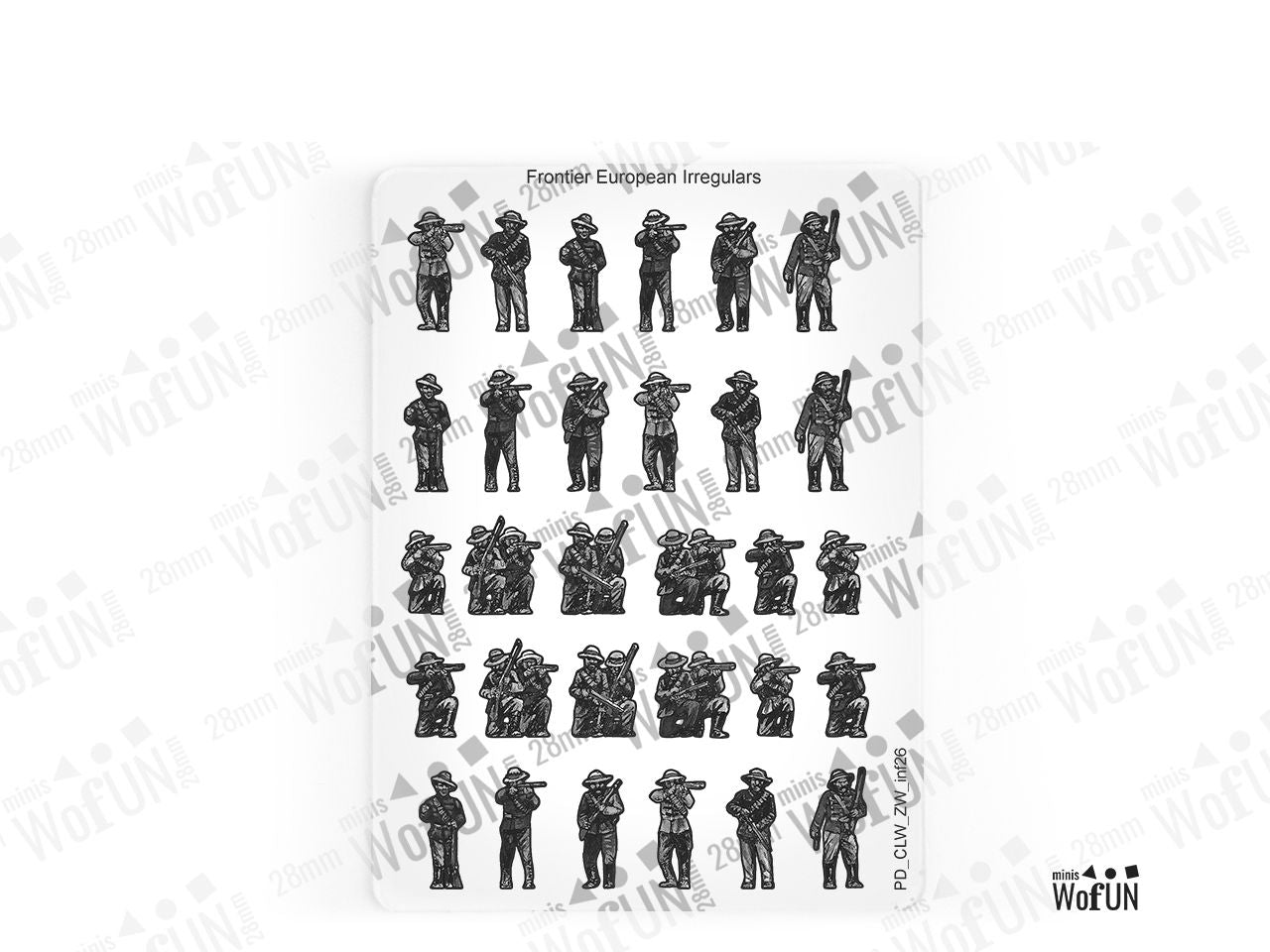 The Frontier European Irregulars Set is crafted on a 15x20 cm Plexiglass sprue and includes: