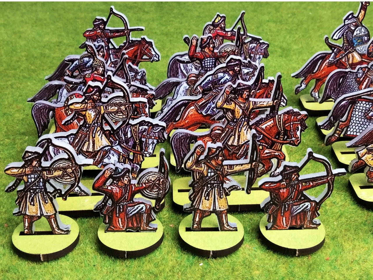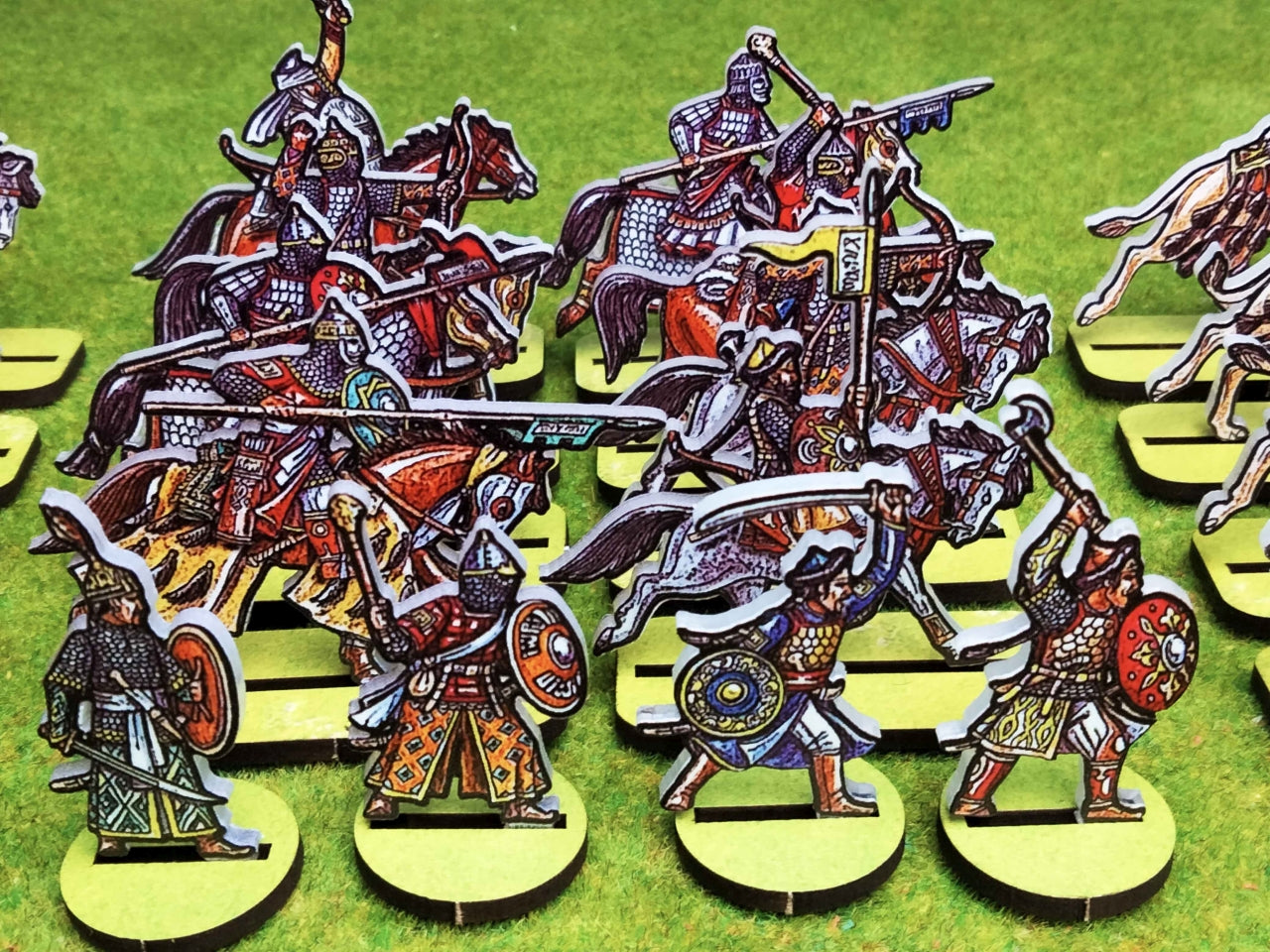 - Cavalry bases are rectangular, 25 x 50 mm for 28mm, and 20 x 35 mm for 18mm.