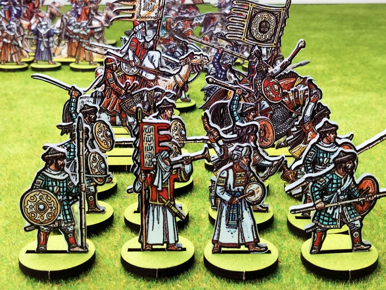 To enjoy fast wargaming, make sure to include the WoFun Standard Bases option. For this set, the action contains 225 bases. If you choose “No Bases”, we will include in your pack only the Plexiglass sprues of figurines, so that you can make your own basing. The WoFun bases for this set are round, hold one figurine each, are made from MDF (2.5 mm thickness), and come printed in green (grass texture). The bases are organized in the manner outlined below: