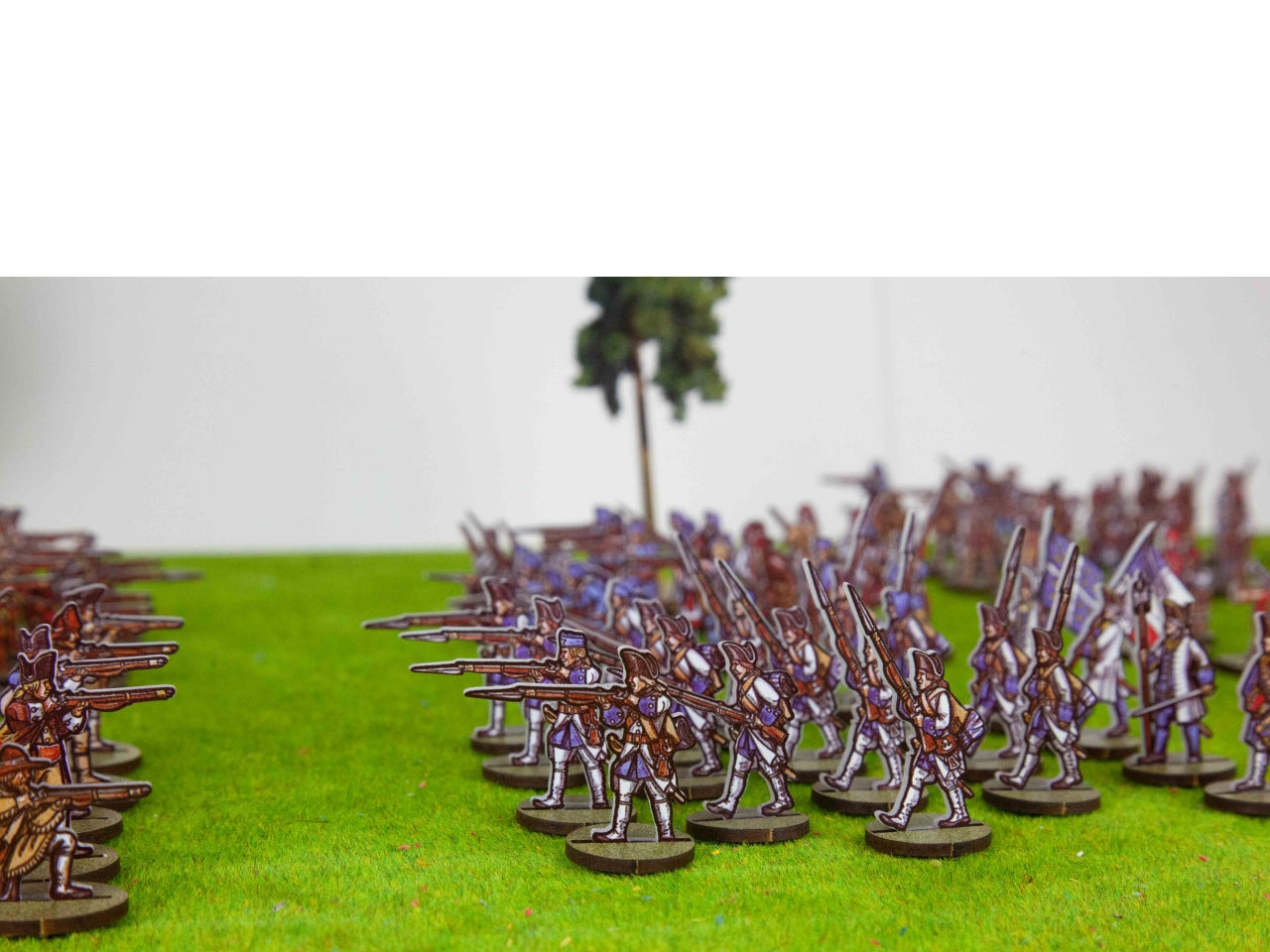 To enjoy fast wargaming, make sure to include the WoFun Standard Bases option. For this set, the action contains 214 bases. If you choose “No Bases”, we will include in your pack only the Plexiglass sprues of figurines, so that you can make your own basing. The WoFun bases for this set are round, hold one figurine each, are made from MDF (2.5 mm thickness), and come printed in green (grass texture). The bases are organized in the manner outlined below: