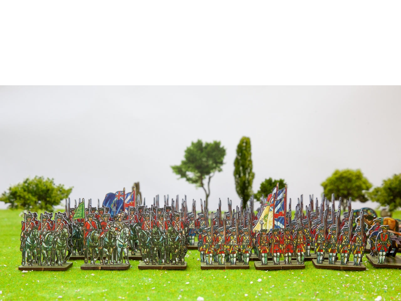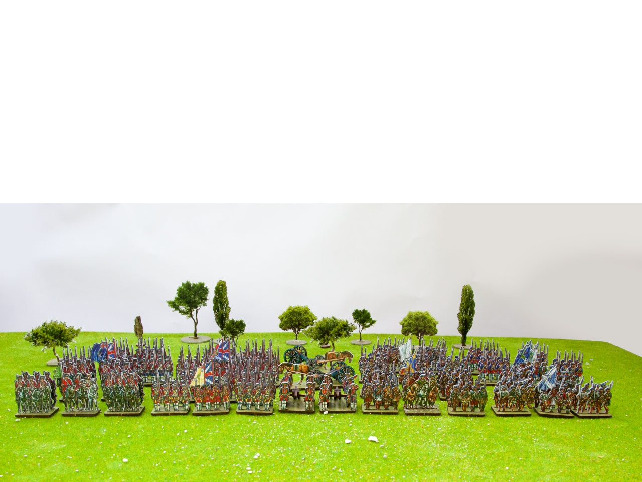 This set includes 113 bases with one or two ranks, 12 artillery bases, and 88 extra bases for casualties. To enjoy fast wargaming, make sure to include the WoFun Standard Bases option. If you choose “No Bases”, we will include in your pack only the Plexiglass sprues of figurines, so that you can make your own basing. The WoFun bases for this set measure 30 x 20mm, are made from MDF (2.5 mm thickness), and come printed in green (grass texture). The bases are structured as follows: