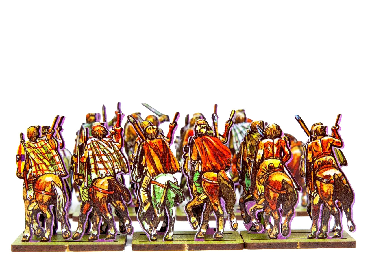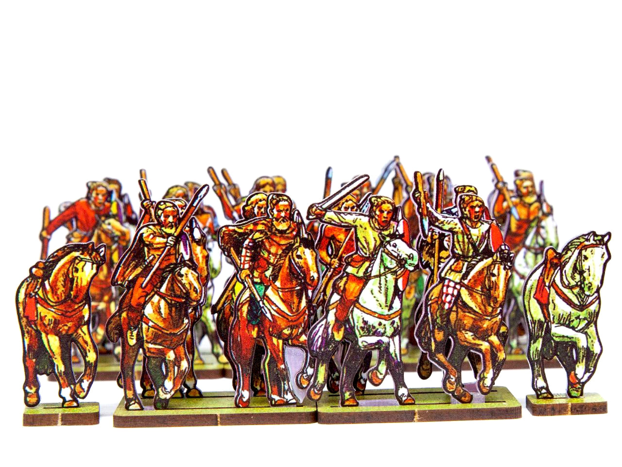 The Germanic Cavalry Set is crafted on a 15x20 cm Plexiglass sprue and includes: