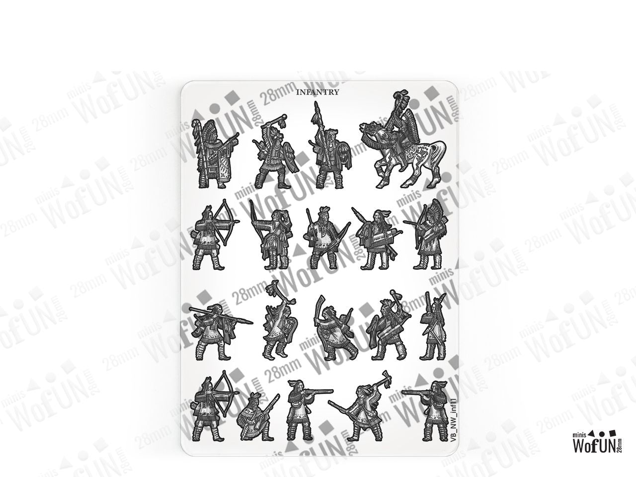 The Great Plains Tribes - Infantry Set is crafted on a 15x20 cm Plexiglass sprue and includes: