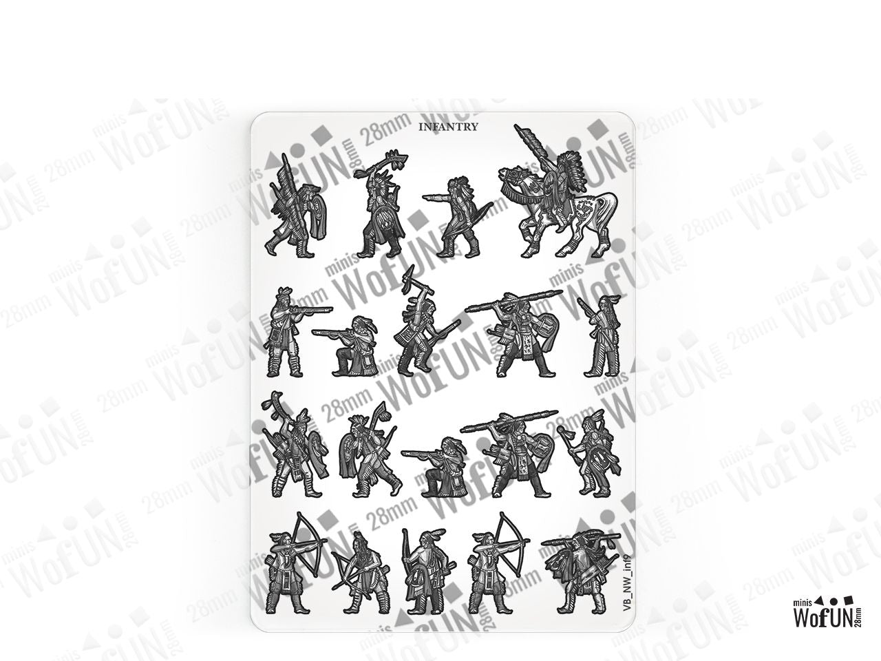 The Great Plains Tribes - Infantry 1 Set is crafted on a 15x20 cm Plexiglass sprue and includes: