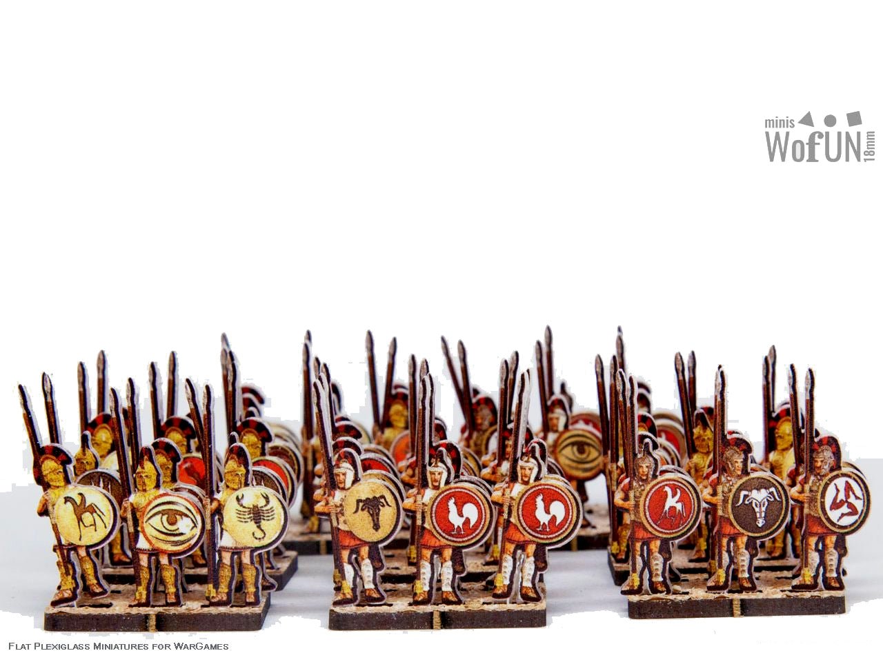The Greek Hoplites 5 Set is crafted on a 15x20 cm Plexiglass sprue and includes: