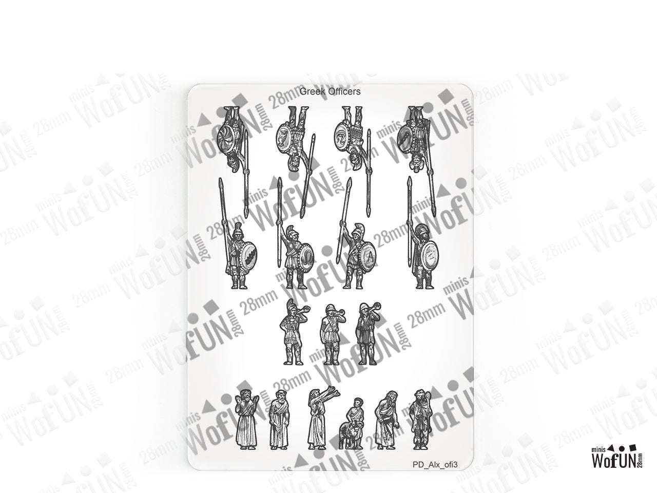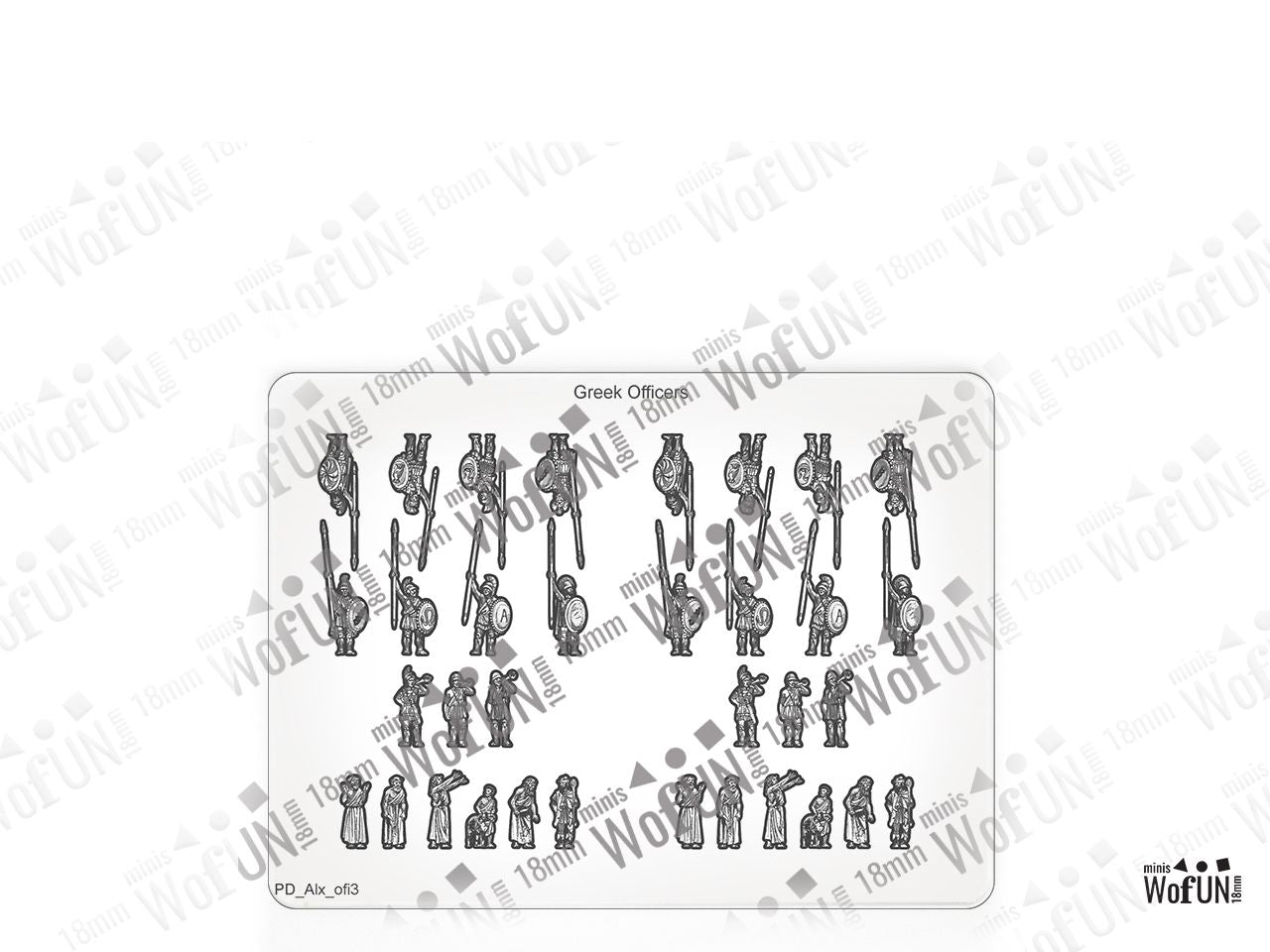 The Greek Officers Set is crafted on a 15x20 cm Plexiglass sprue and includes: