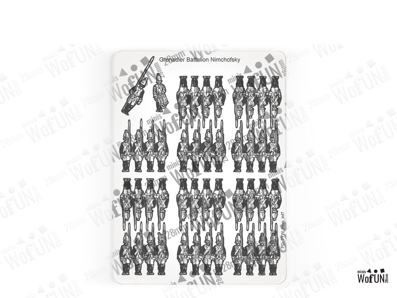 The Grenadier Battalion Nimchofsky Set is crafted on a 15x20 cm Plexiglass sprue and includes: