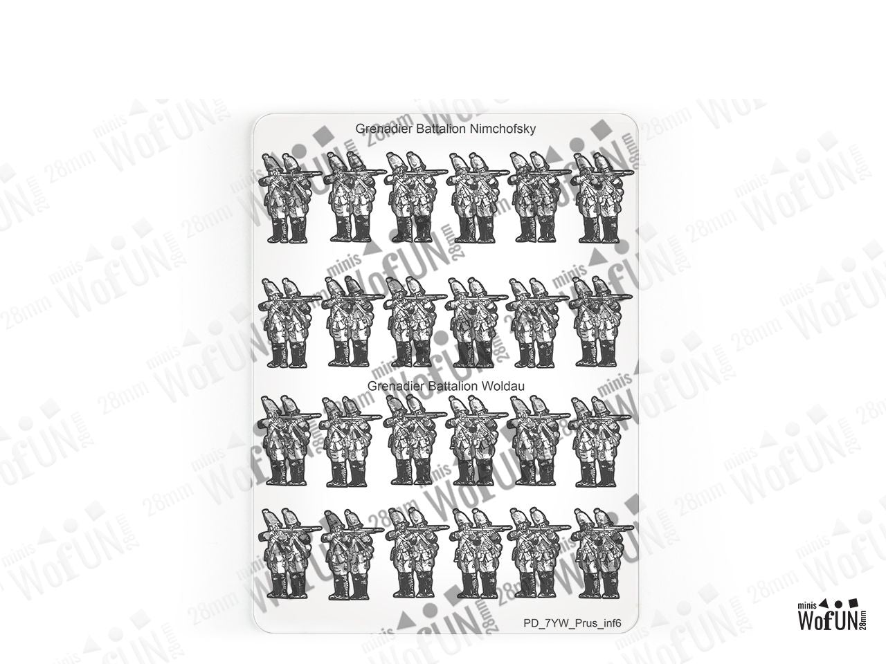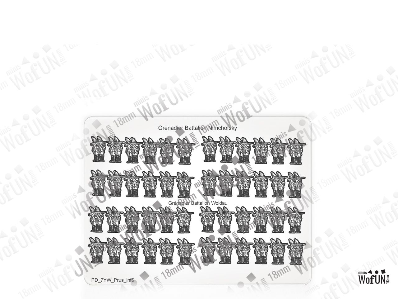 The Grenadier Battalion Nimchofsky + Woldau Set is crafted on a 15x20 cm Plexiglass sprue and includes: