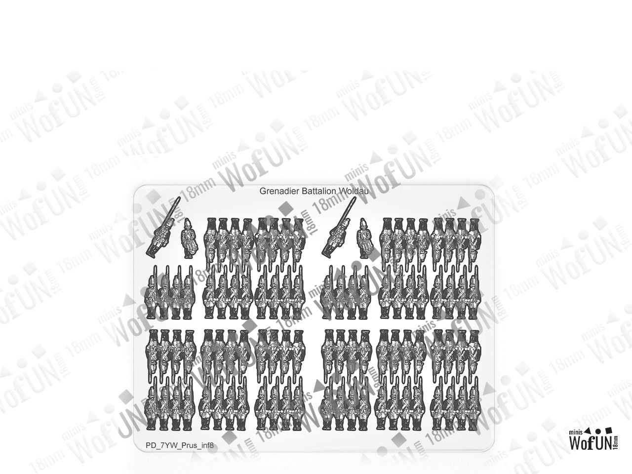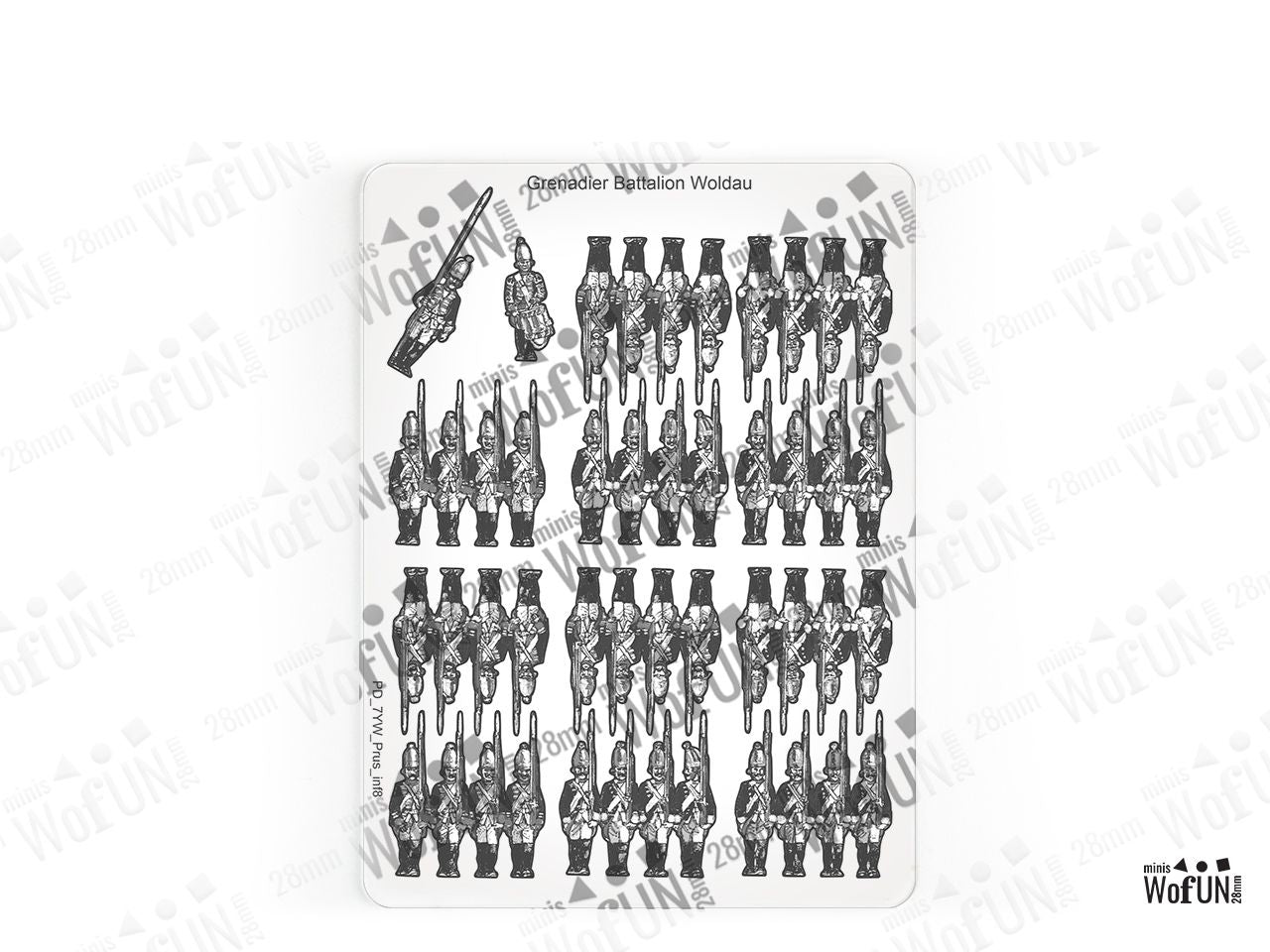 The Grenadier Battalion Woldau Set is crafted on a 15x20 cm Plexiglass sprue and includes: