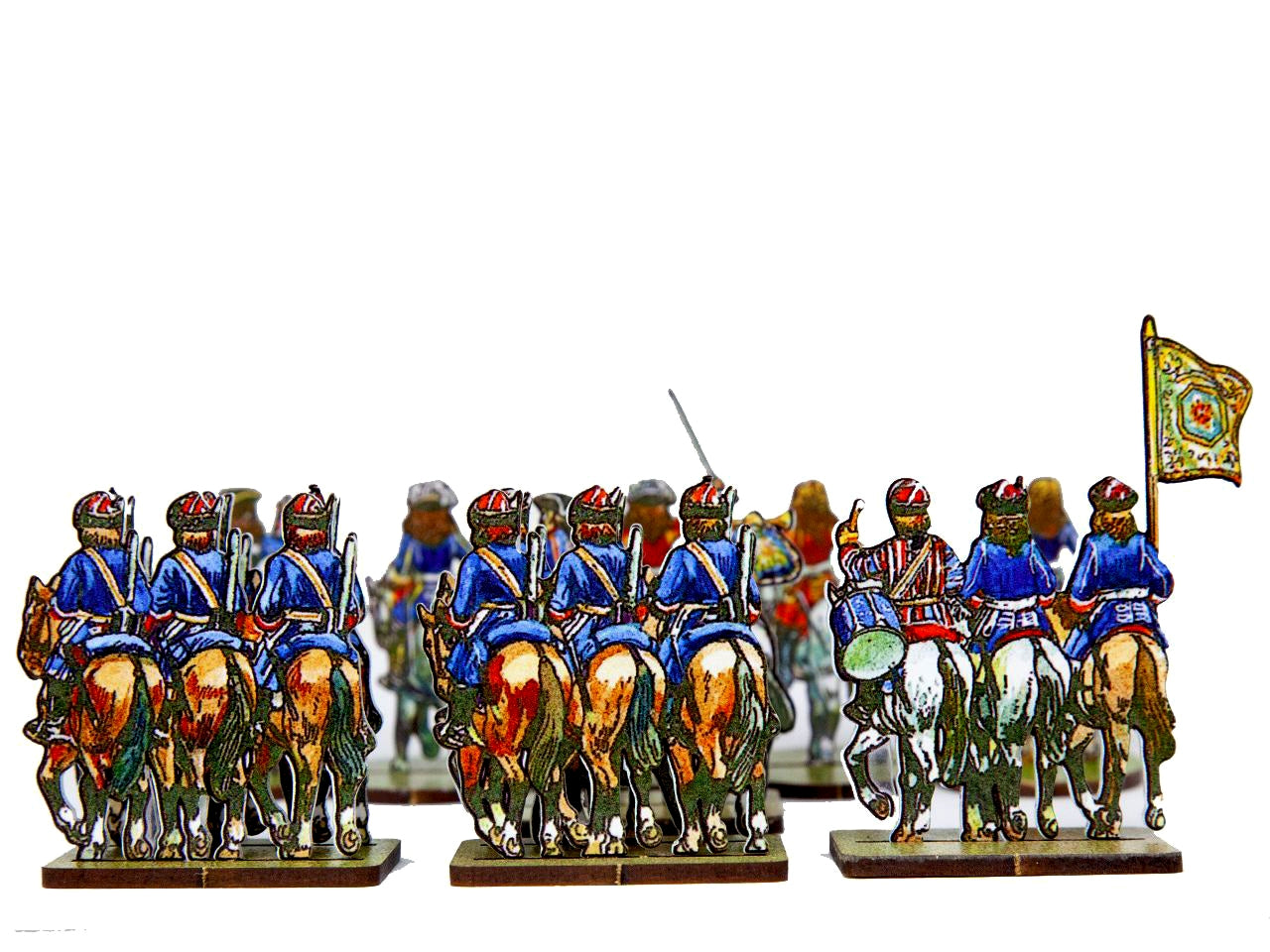 - A Cavalry Base holds 2 strips of figurines, in 2 ranks.