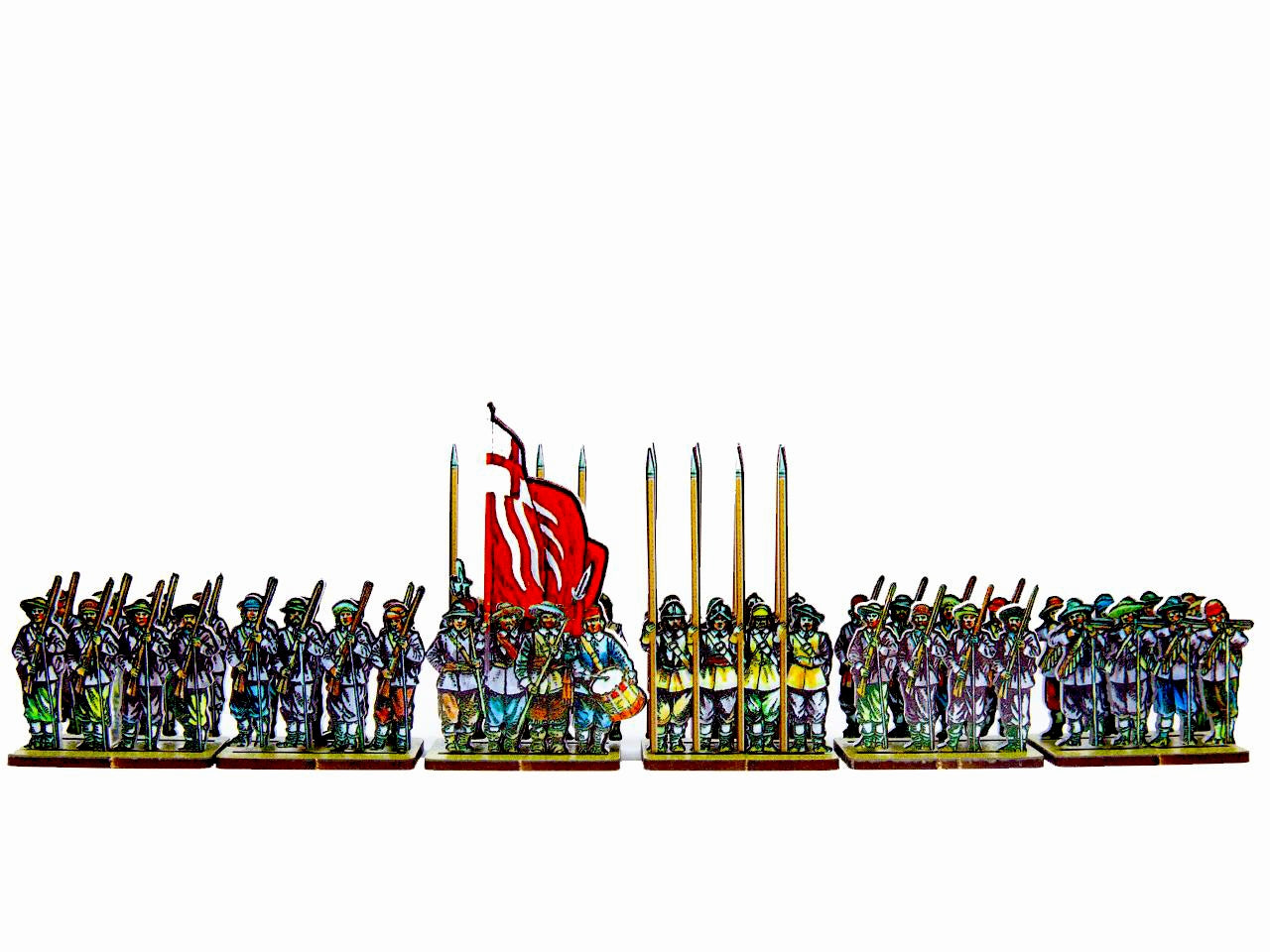The Greycoat Regiment Set is crafted on a 15x20 cm Plexiglass sprue and includes: