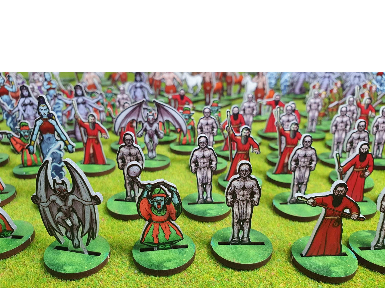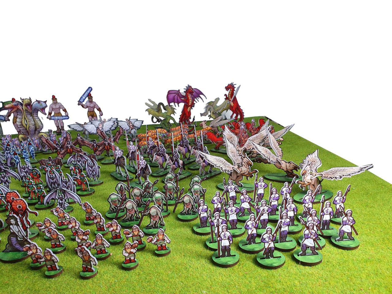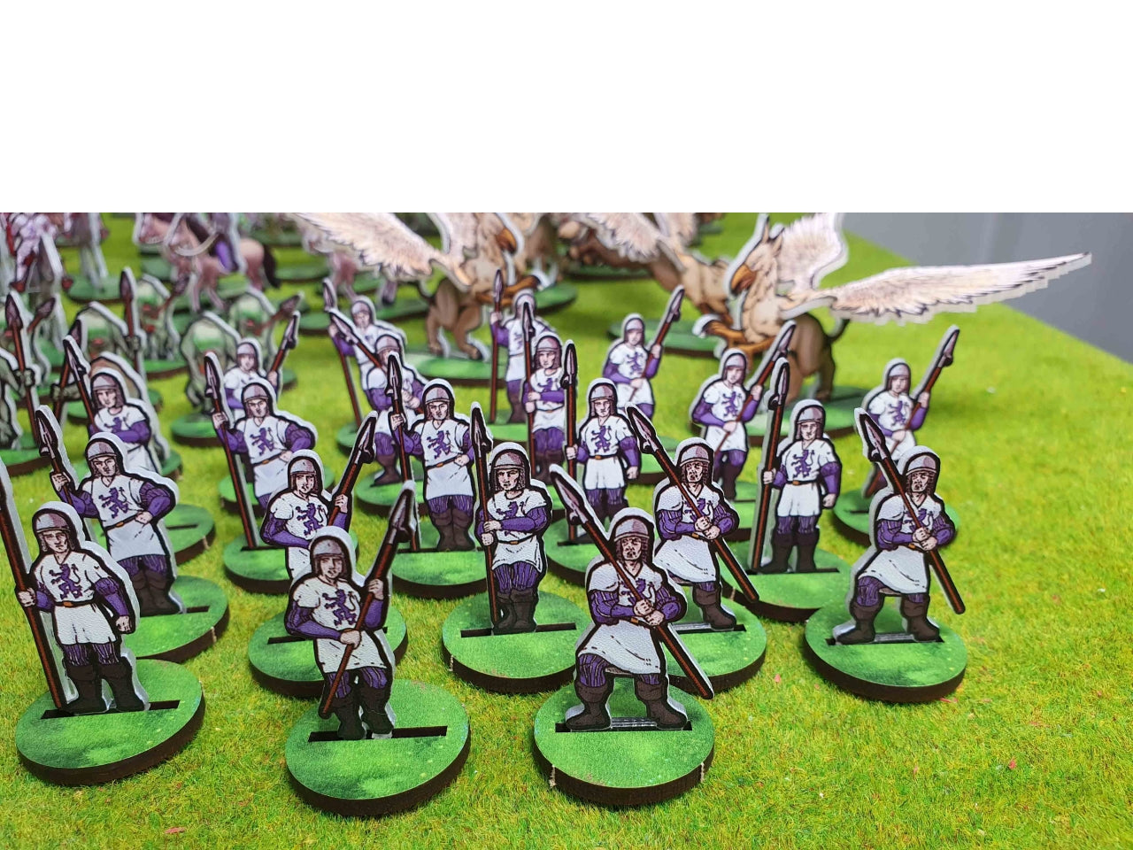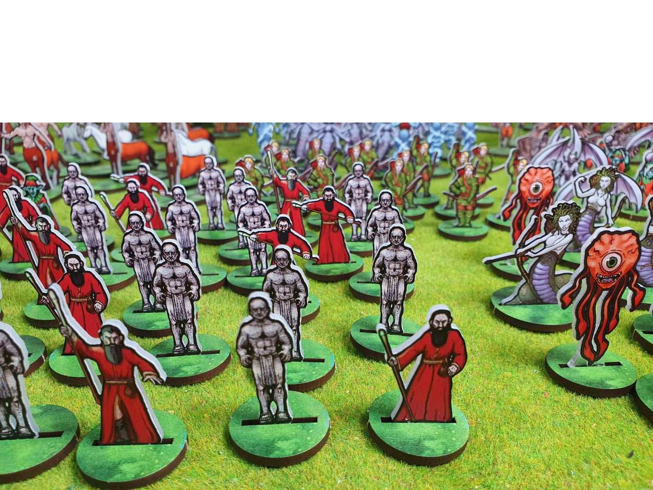 - 25 mm round bases for most of the infantry miniatures and medium scale characters
