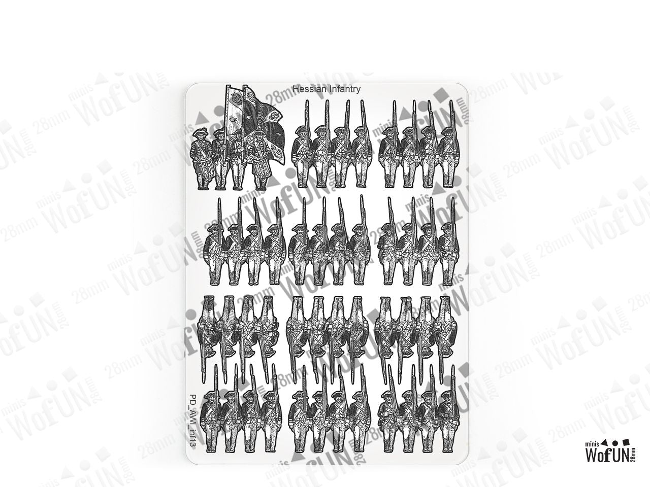 The Hessian Infantry (Von Trumbach Regiment) Set is crafted on a 15x20 cm Plexiglass sprue and includes: