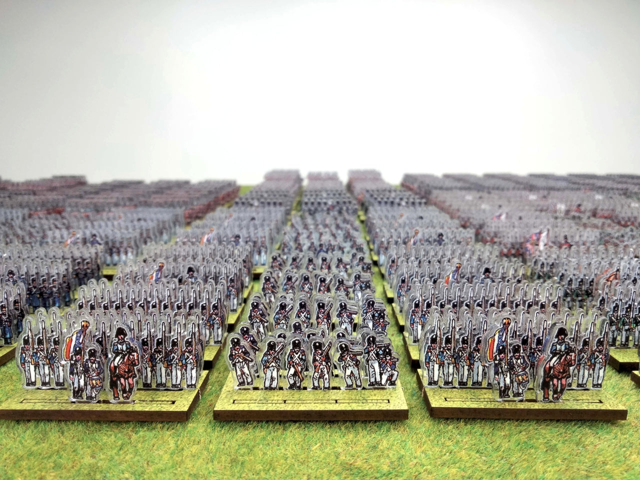 The 10mm Hundred Days Campagn Full Pack contains 6710 characters on 33 Plexiglass sprues, and includes all the regiments from the 10mm Waterloo collection.