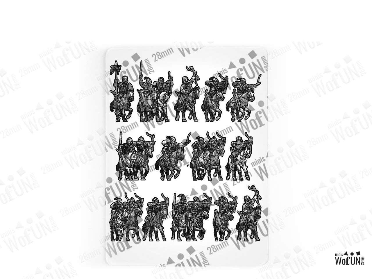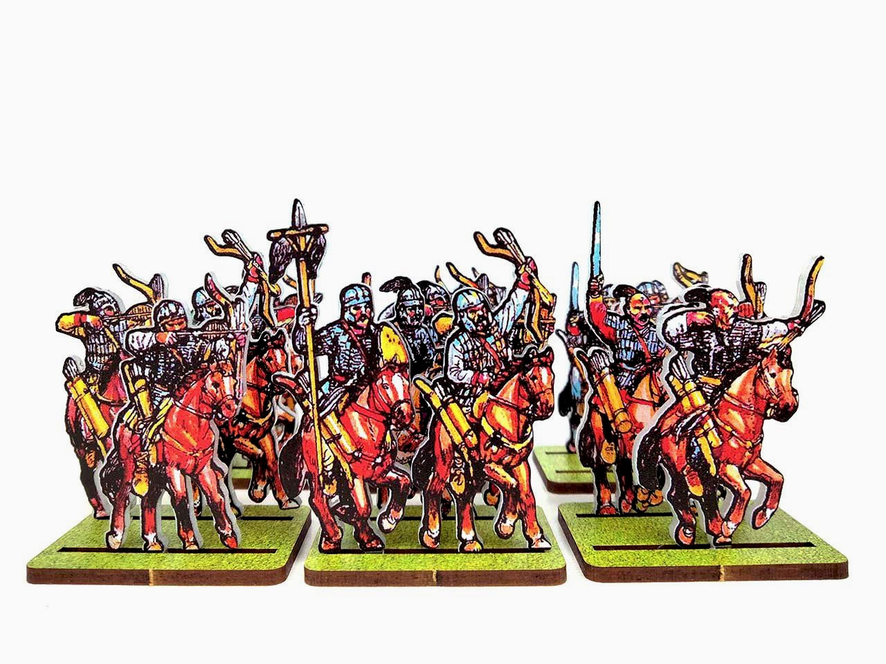 The Hunnic Amored Horse Archers Set is crafted on a 15x20 cm Plexiglass sprue and includes: