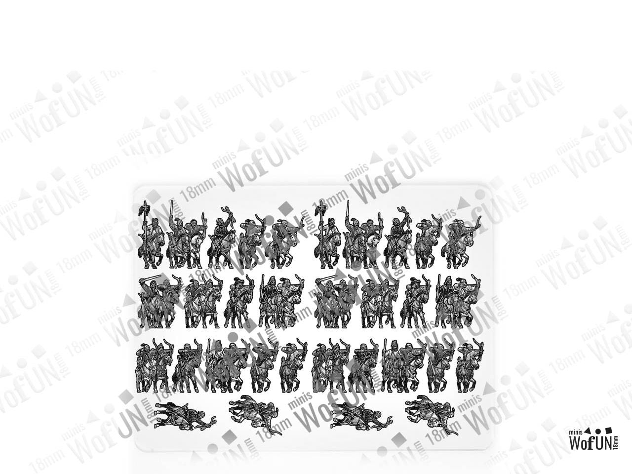 The Hunnic Unarmored Horse Archers Set is crafted on a 15x20 cm Plexiglass sprue and includes: