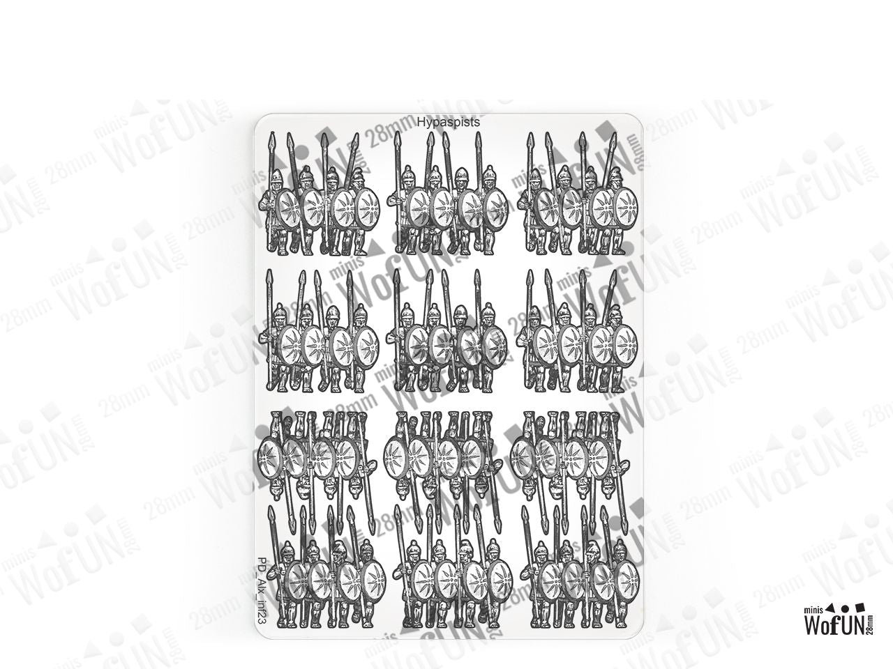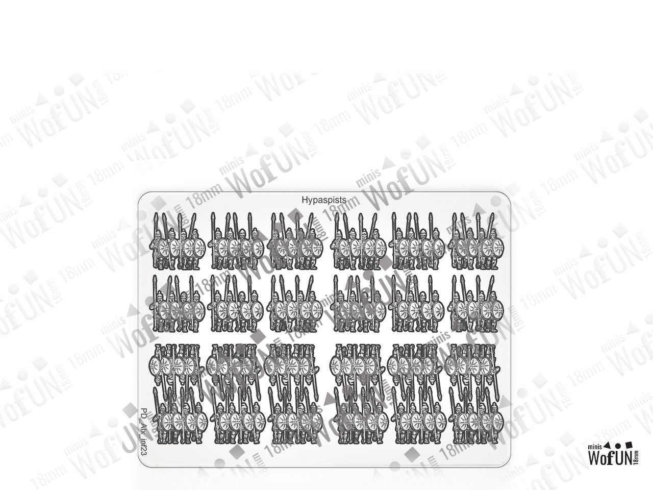 The Hypaspists Set is crafted on a 15x20 cm Plexiglass sprue and includes: