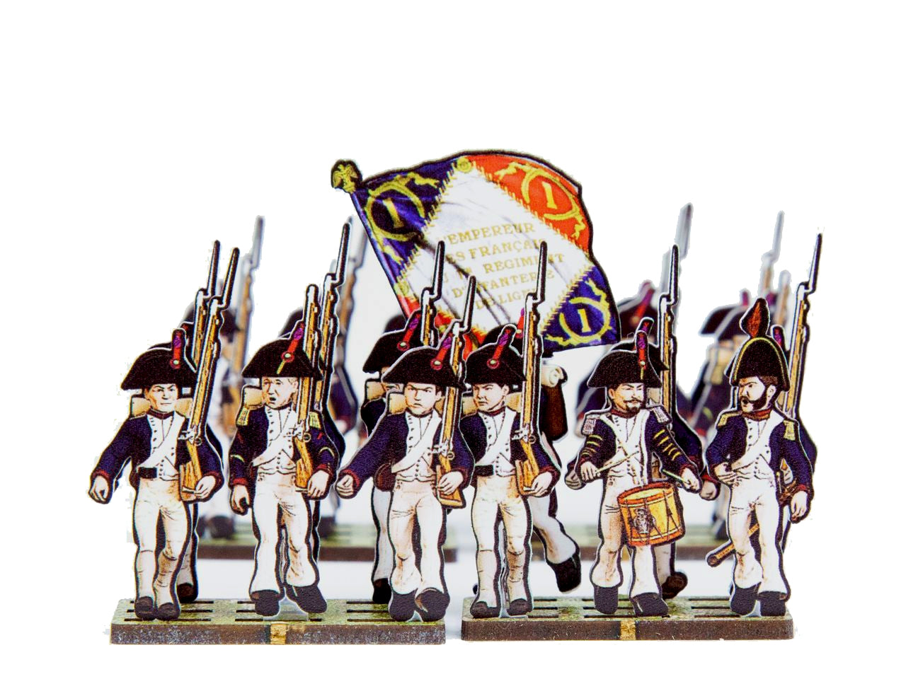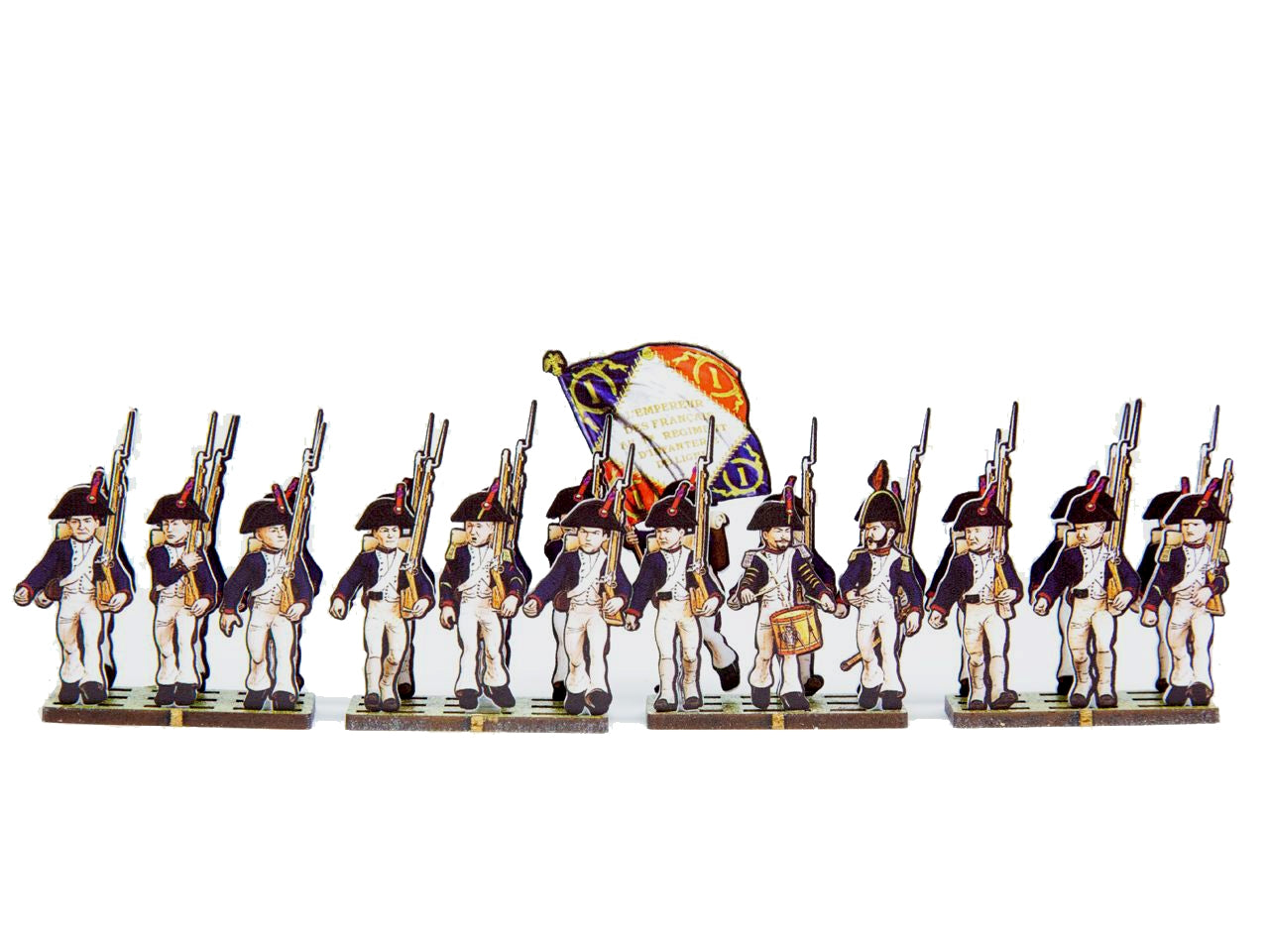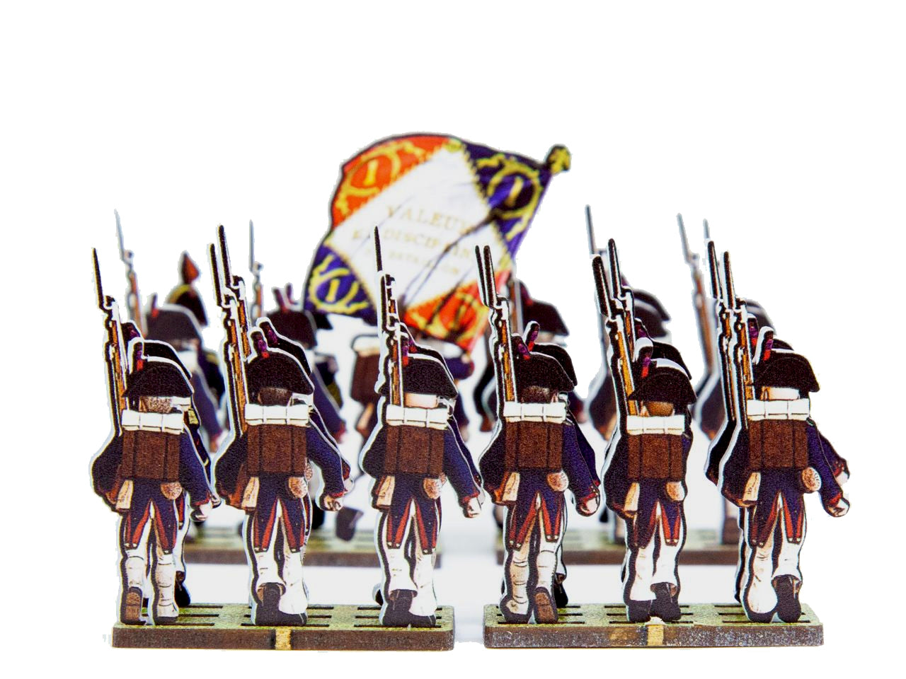 The Inf. De Ligne 1805 Fusiliers Set is crafted on a 15x20 cm Plexiglass sprue and includes: