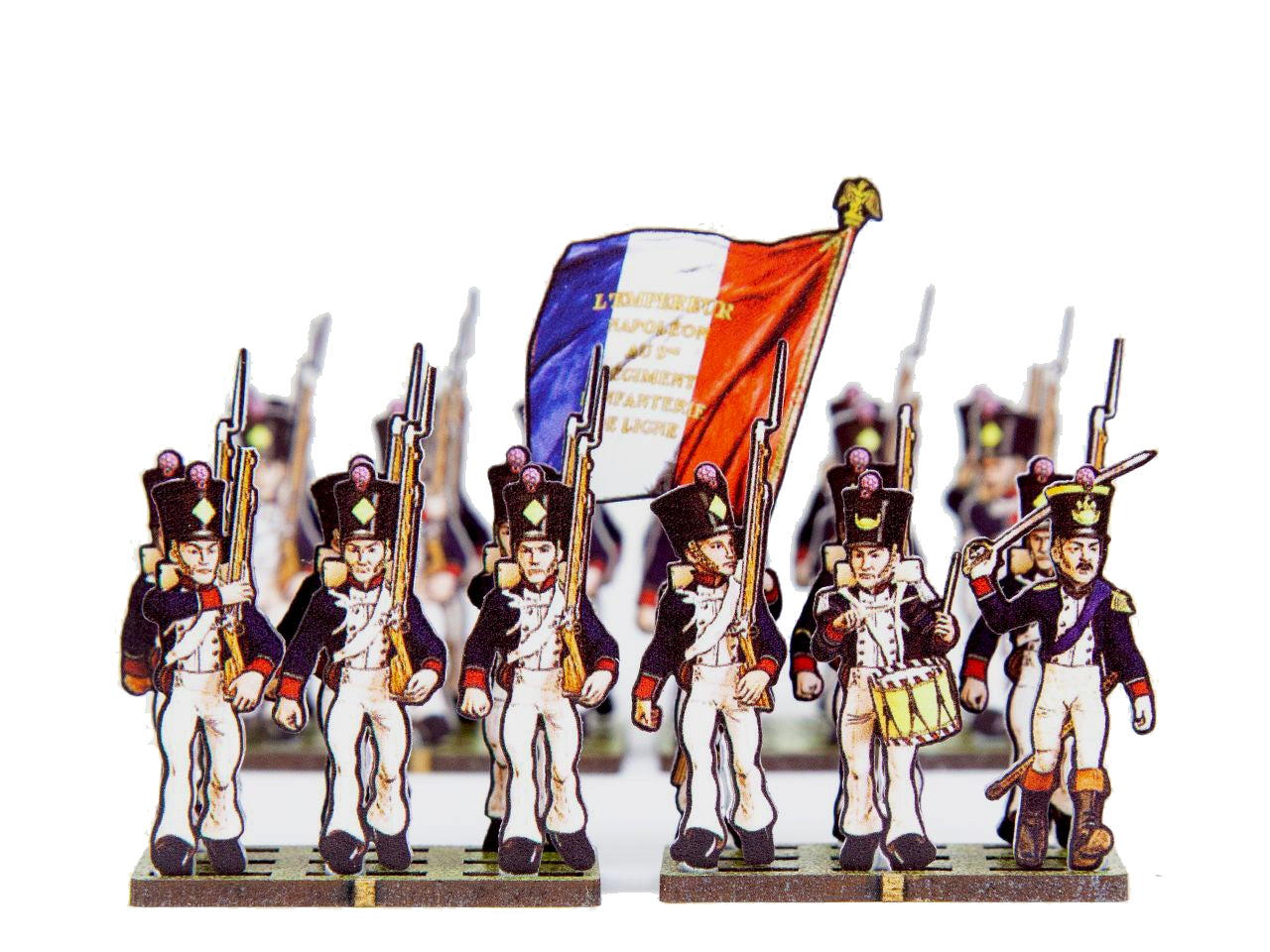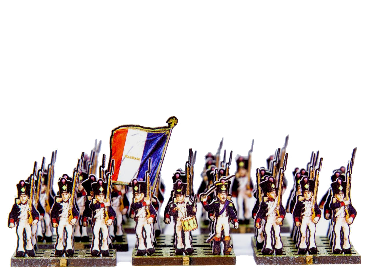 The Inf. De Ligne 1815 Fusiliers V3 Set is crafted on a 15x20 cm Plexiglass sprue and includes: