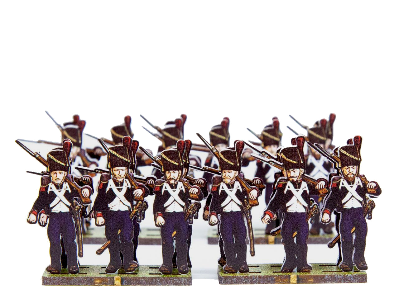 The Inf. Legere 1805 Carabiniers Set is crafted on a 15x20 cm Plexiglass sprue and includes: