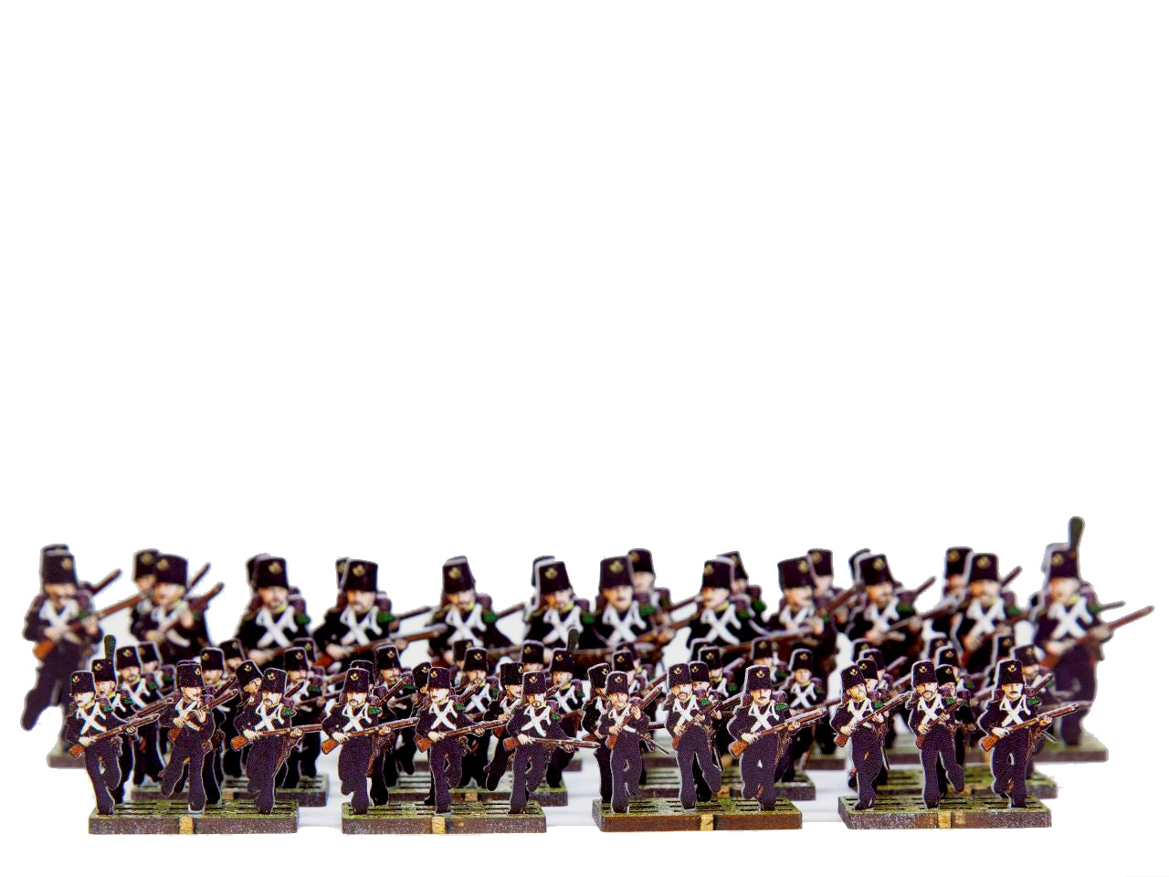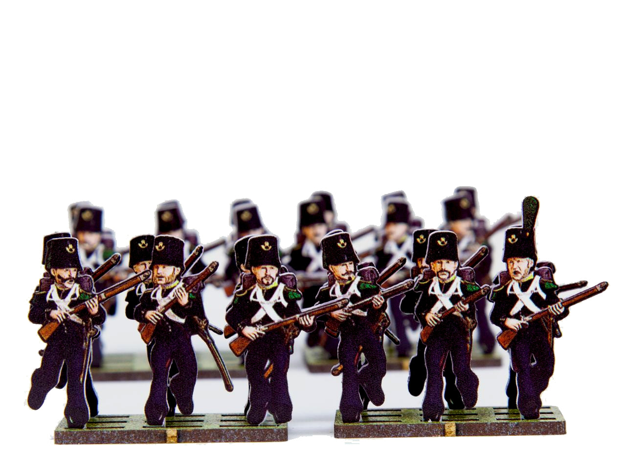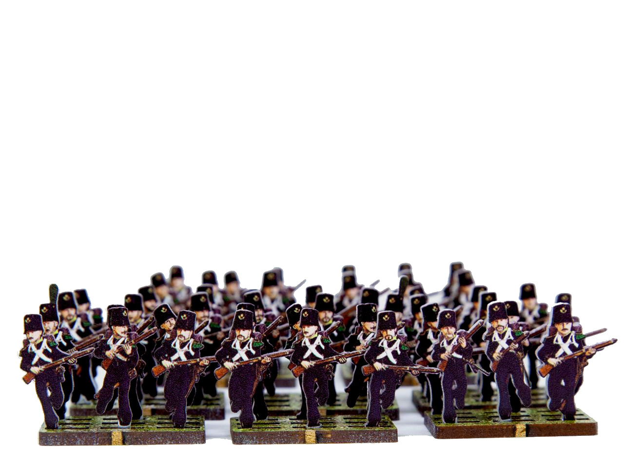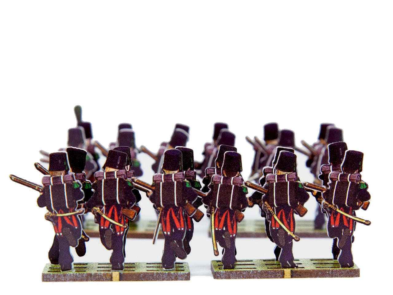 The Inf. Legere 1805 Voltigeurs Set is crafted on a 15x20 cm Plexiglass sprue and includes: