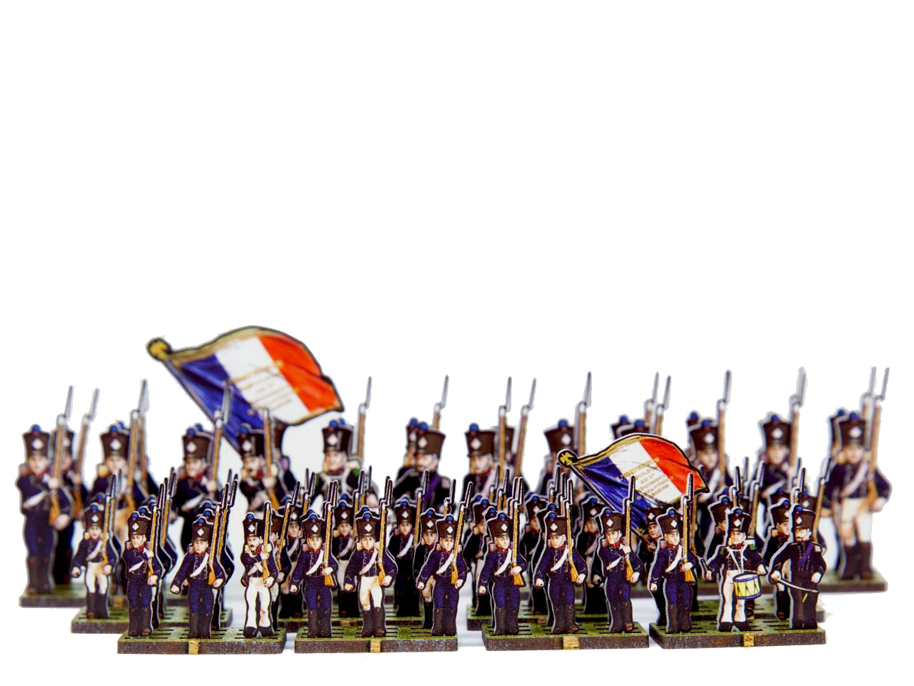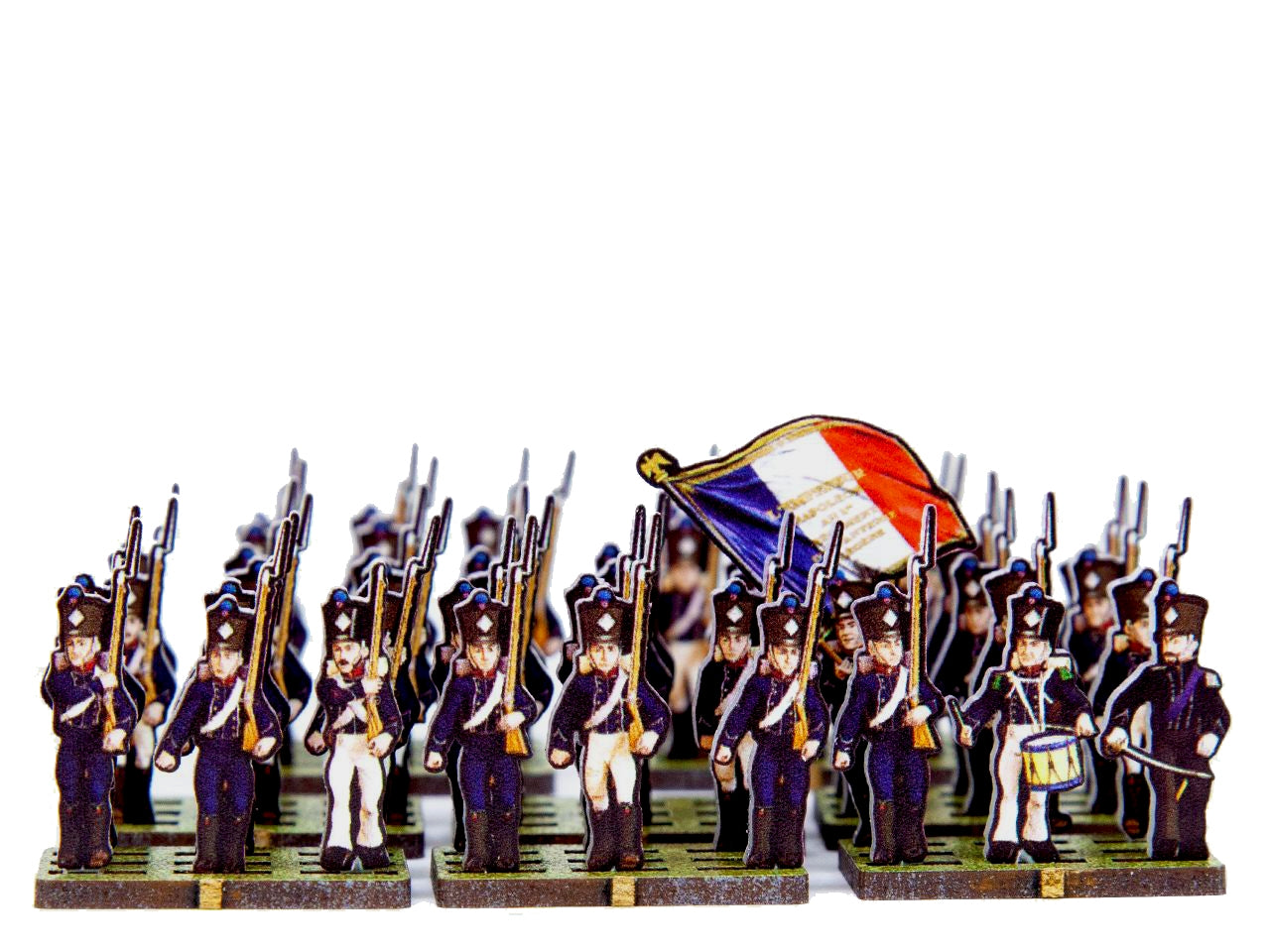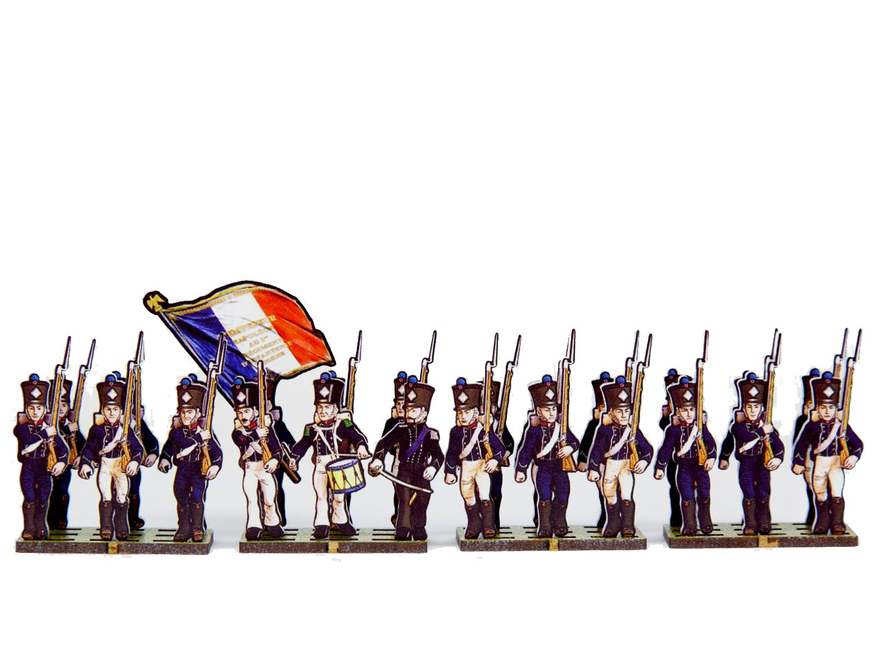 The Inf. Legere 1815 Chasseur Set is crafted on a 15x20 cm Plexiglass sprue and includes: